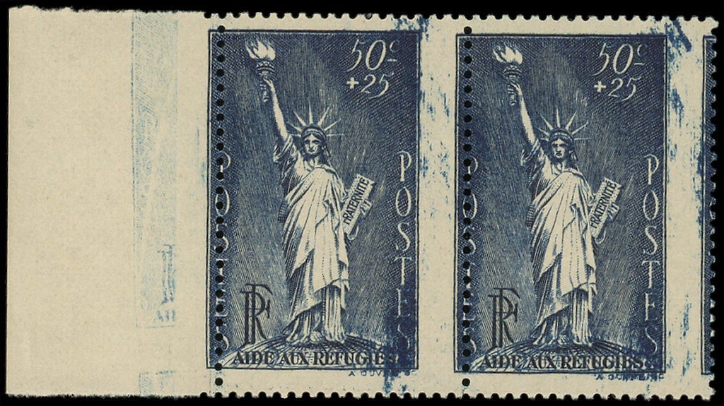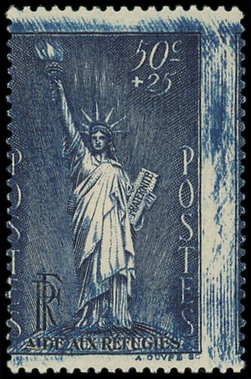 50c. + 25c. bleu-gris, PIQUAGE à cheval et impression MACULEE, TB (Image)