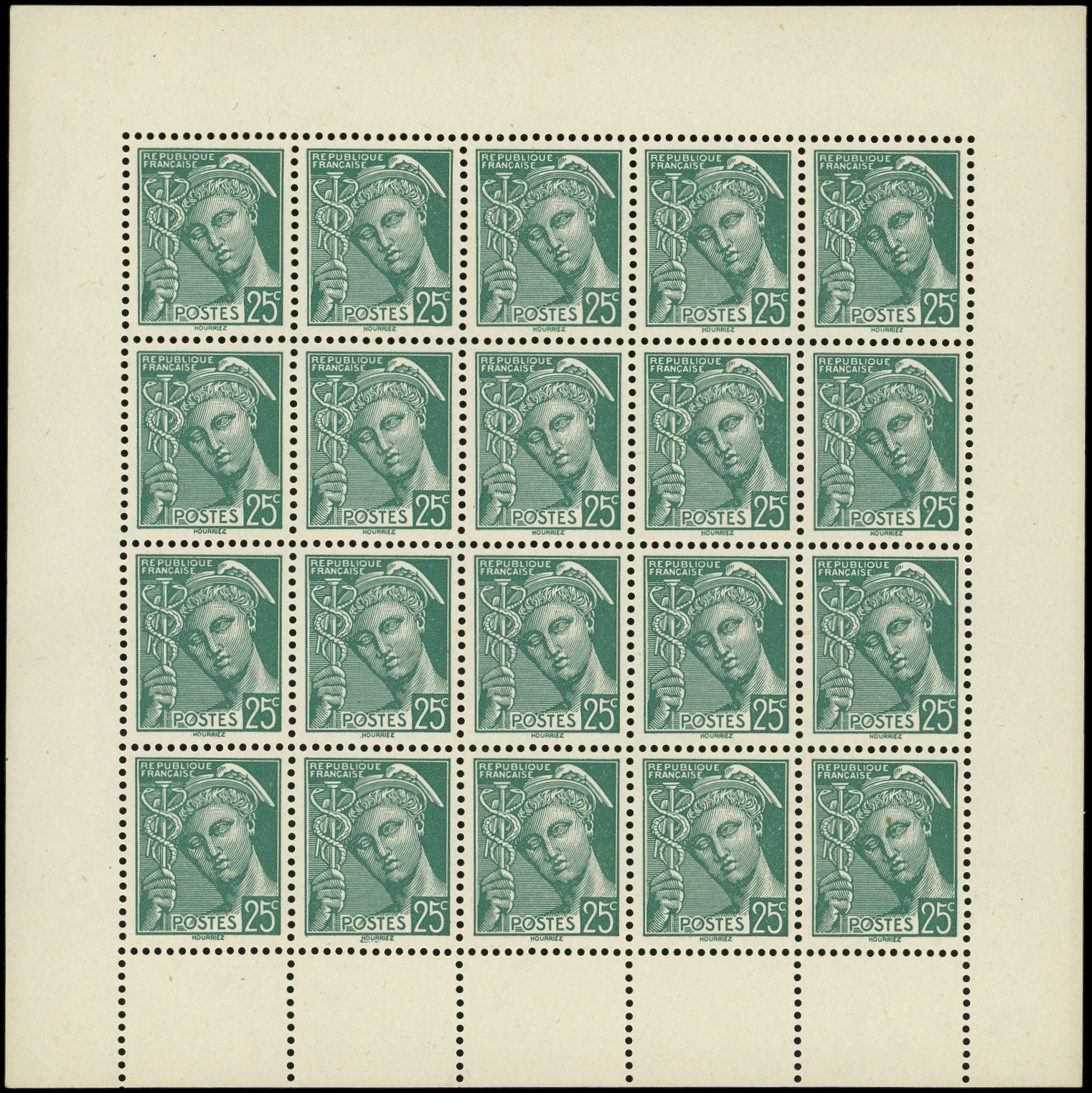 25c. vert, FAUX de l'Intelligence Service, feuillet de 20, TB (Image)