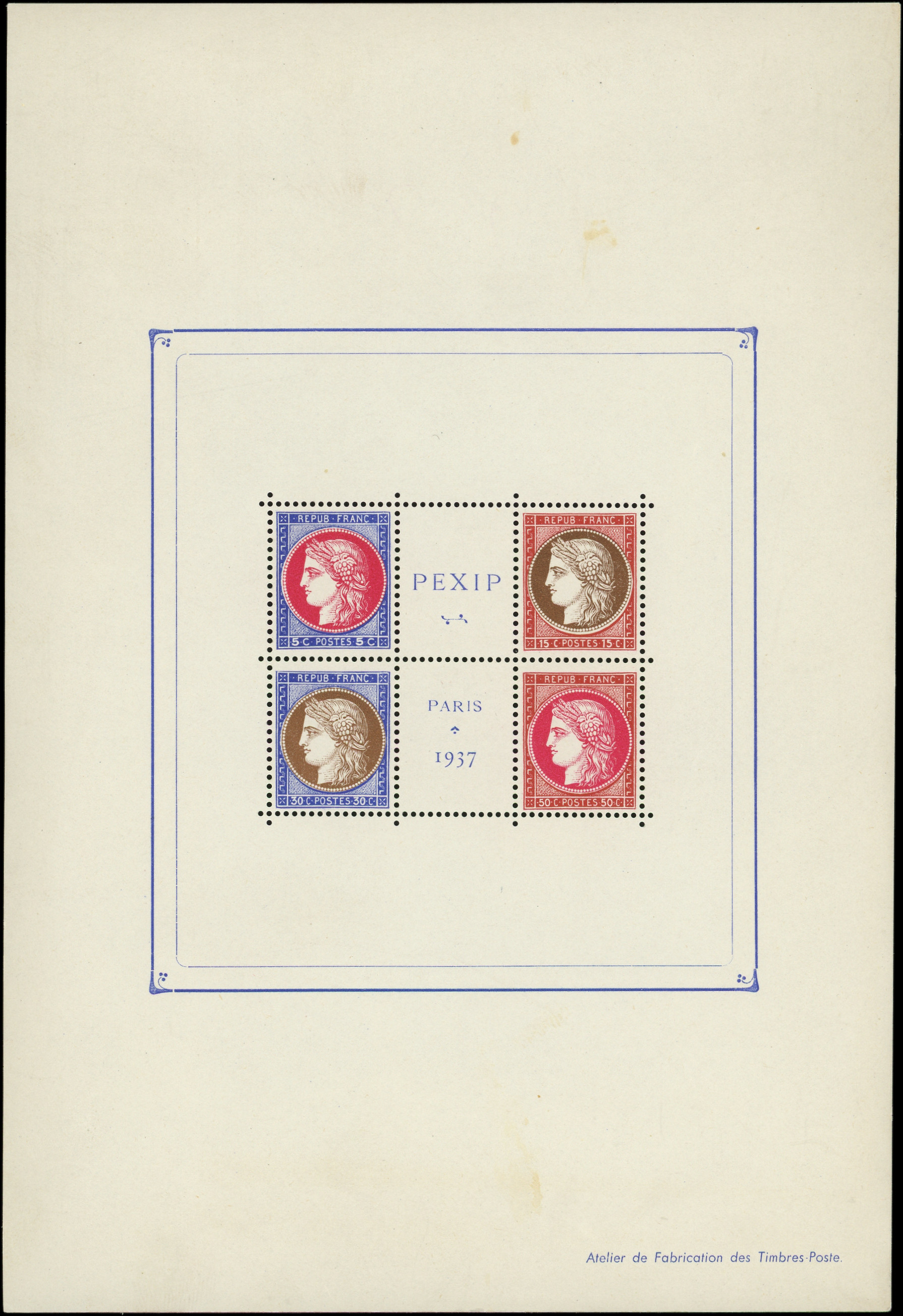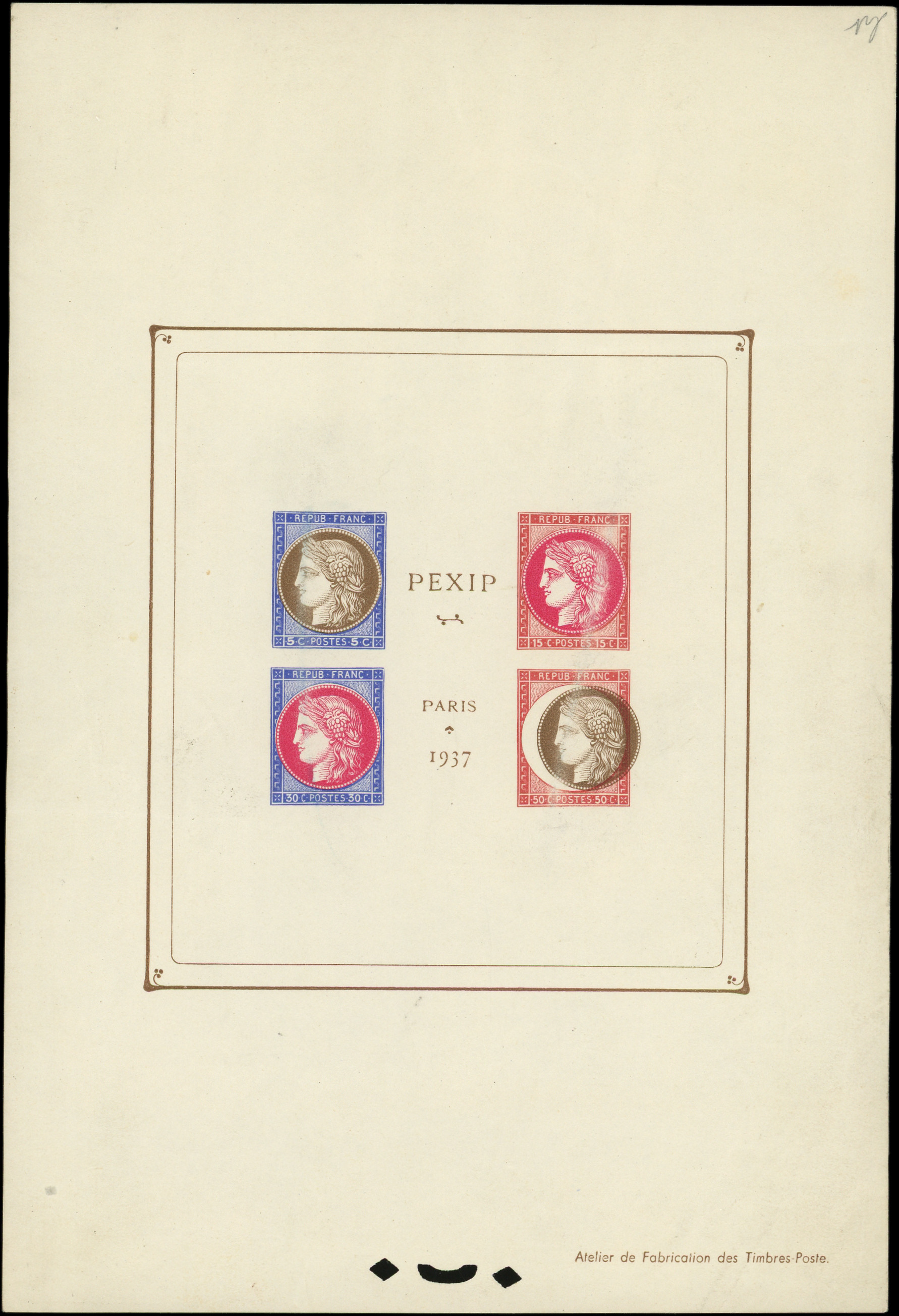 N°3, COULEURS des médaillons inversées, cadre et inscriptions BLEUS, succession "Lapierre", 2 à 3 pièces connues, NON EMIS, RRR, Superbe (Image)