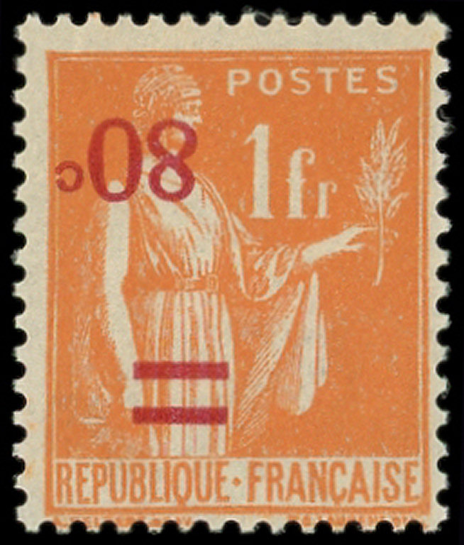 s. 1f. orange, surch. RENVERSEE, TB. C et Br (Image)