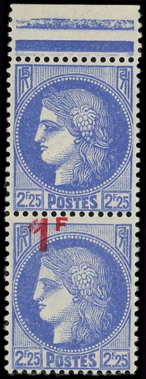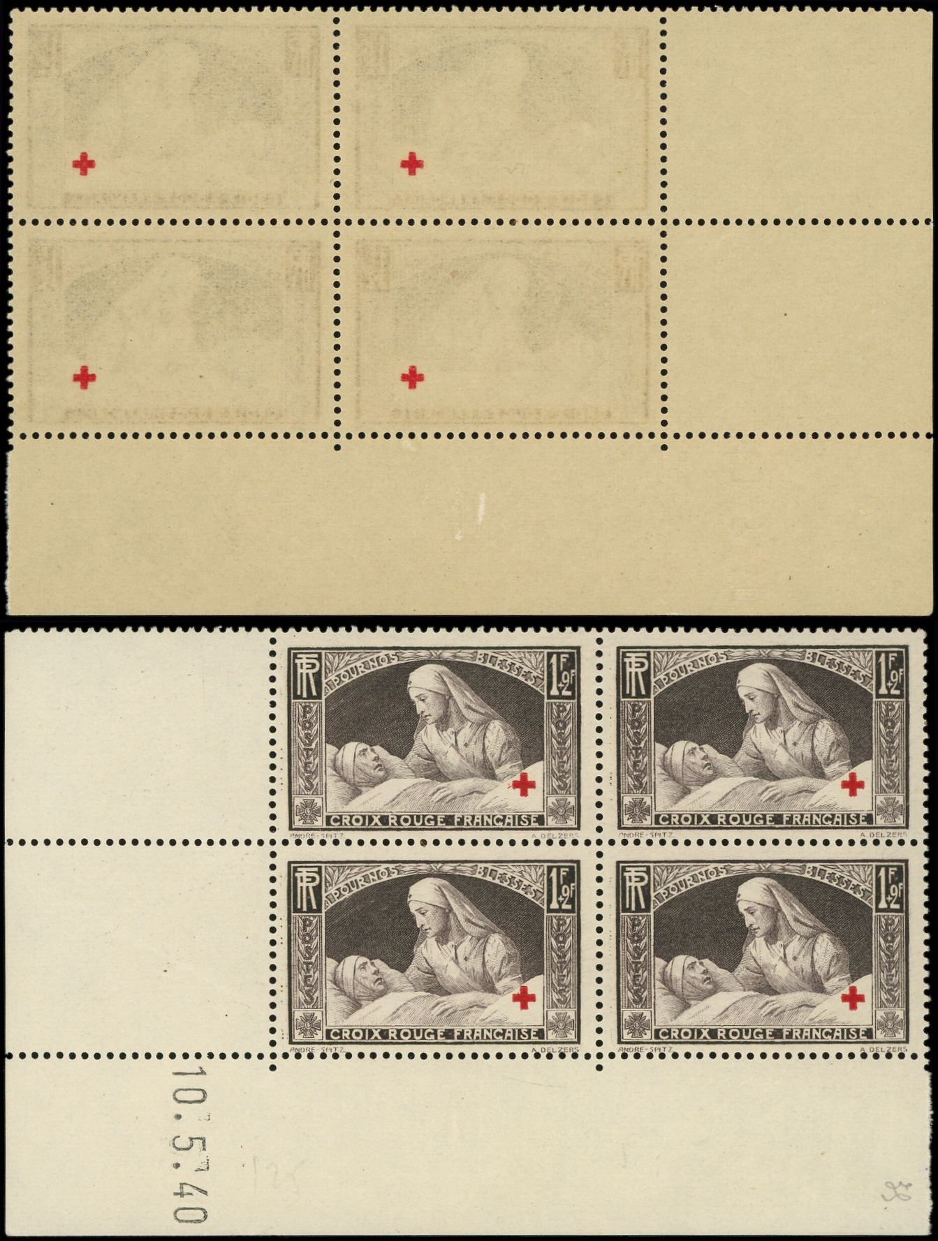 Rouge, 1f. + 2f, RECTO-VERSO de la CROIX, BLOC de 4 CD 10/5/40, TB, cote Maury (Image)