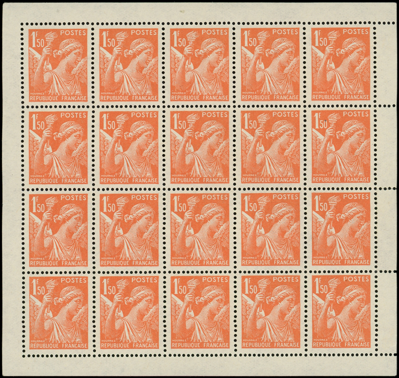 1f.50 rouge-orange, FAUX de l'Intelligence Service, feuillet de 20, TB (Image)