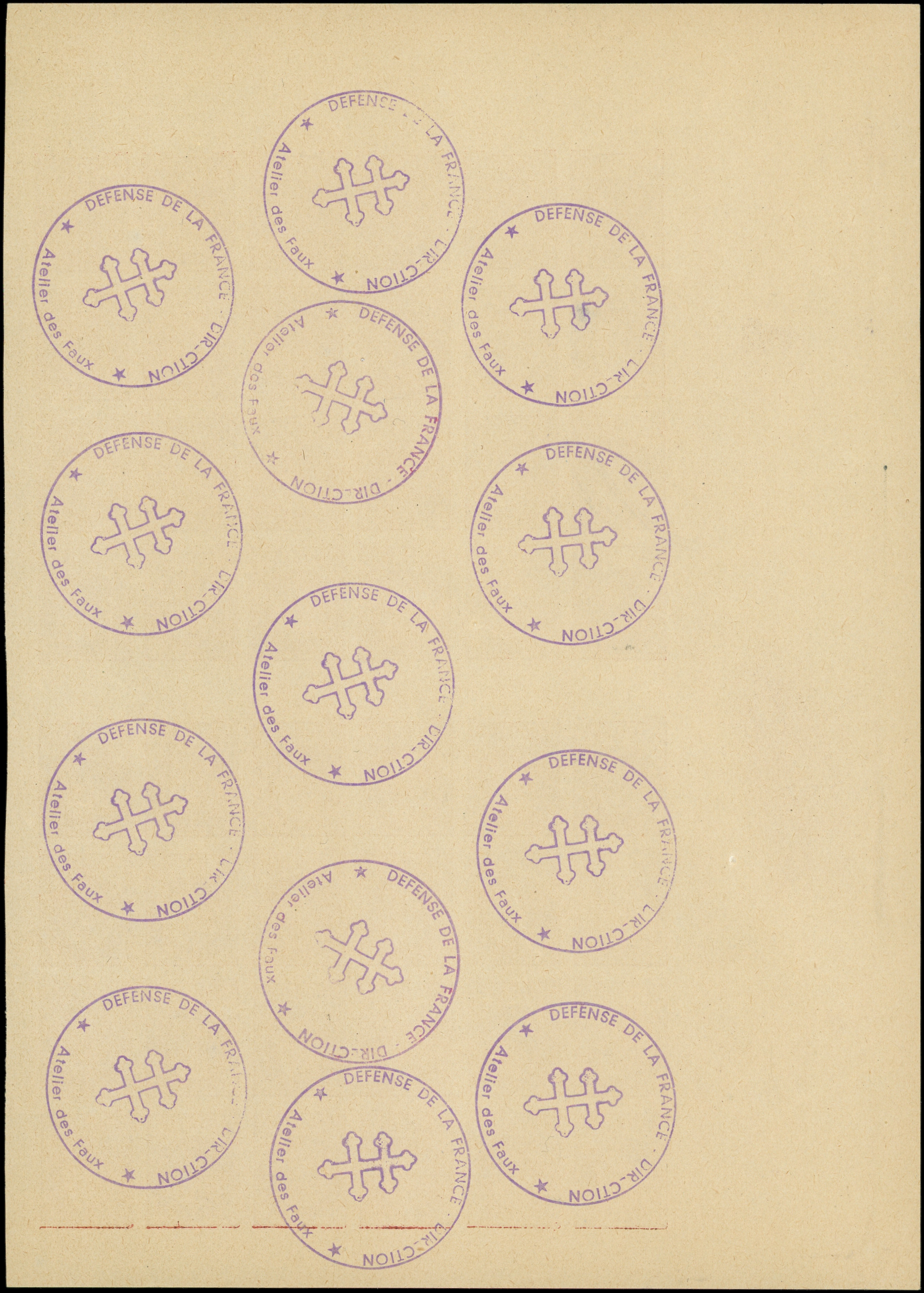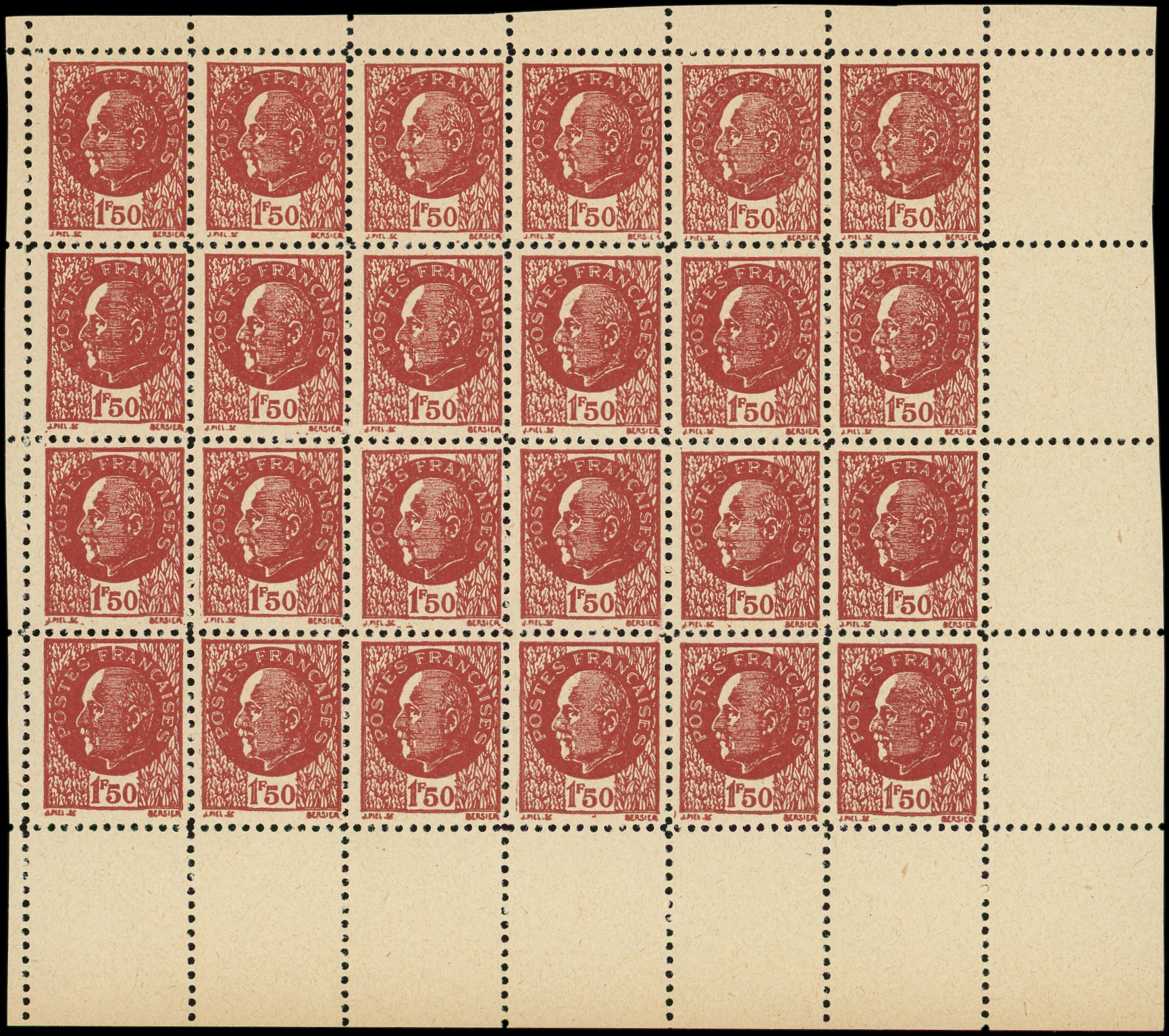1f.50 brun-rouge, FAUX F.F.I, feuillet de 24, TB (Image)