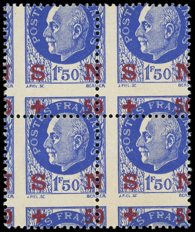 50c. s. 1f.50 bleu, BLOC de 4 PIQUAGE en CROIX, TB (Image)