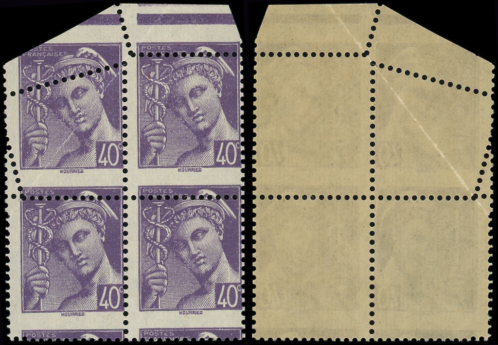 40c. violet, spectaculaire variété de PIQUAGE en BLOC de 4, TB (Image)