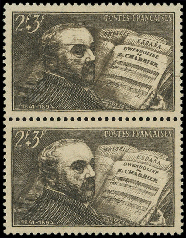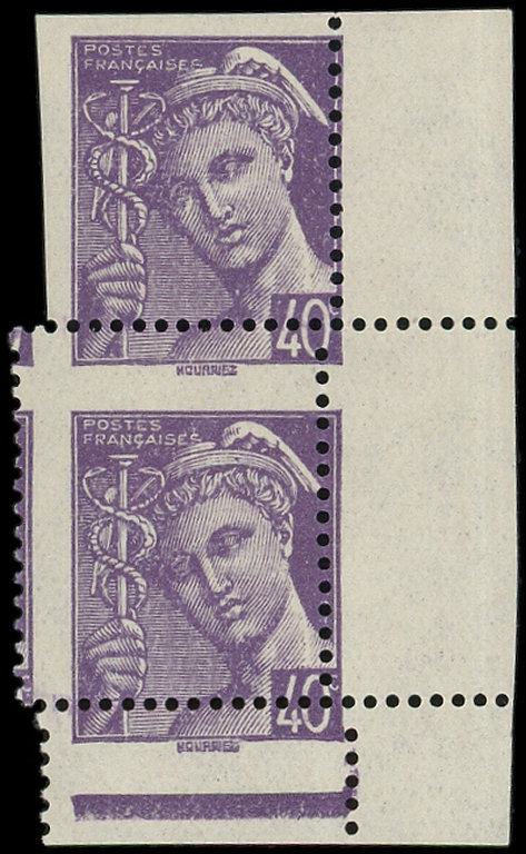 40c. violet, PAIRE PIQUAGE DECALE donnant un ex. dentelé 3 côtés, TB (Image)