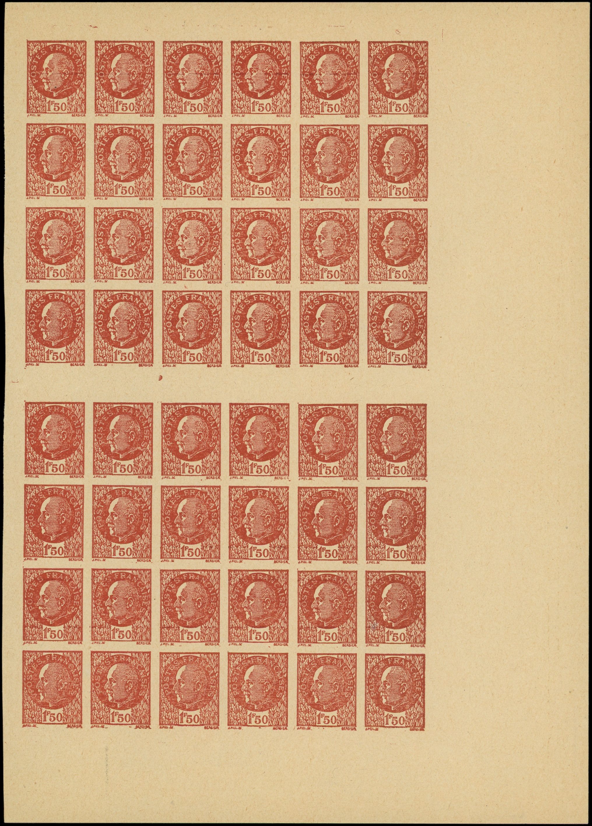 1f.50 brun-rouge, FAUX F.F.I, NON DENTELE, BLOC de 48 avec bords, TB (Image)