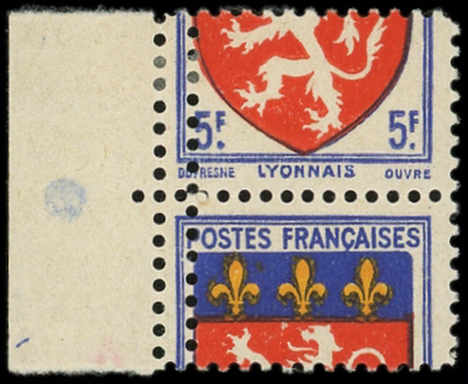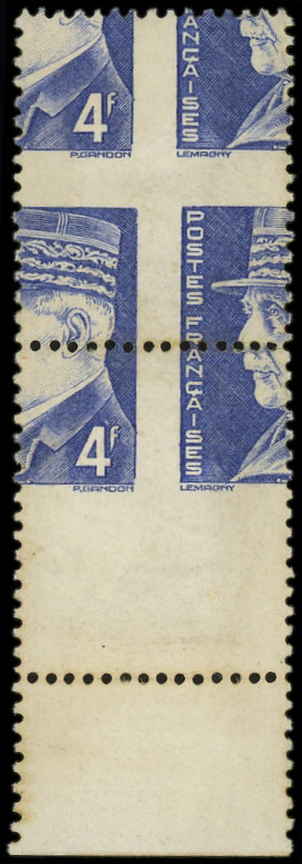 4f. outremer, PAIRE verticale bdf, PIQUAGE en CROIX, TB (Image)