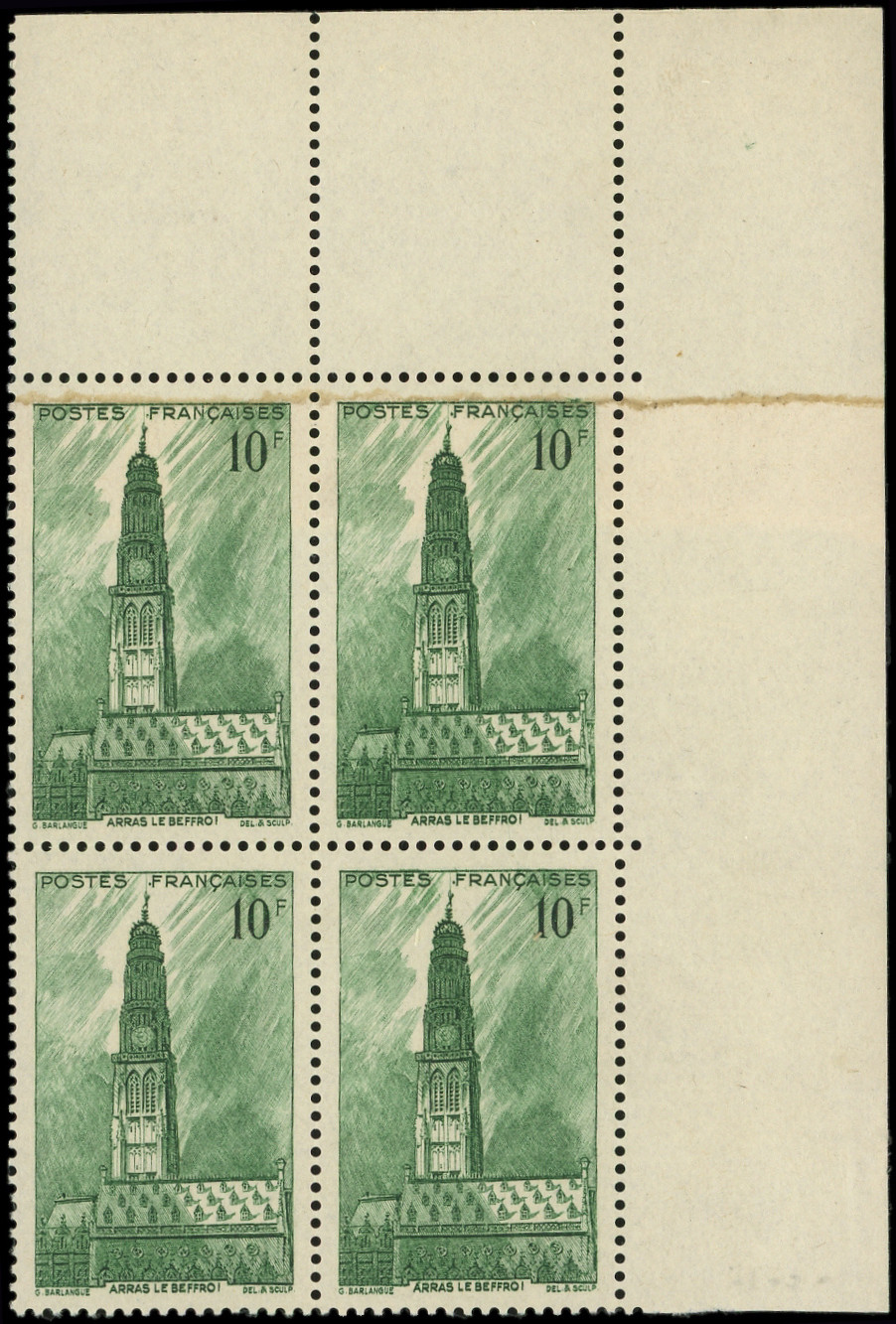 d'Arras, BLOC de 4 cdf, 2 ex. IMPRESSION sur RACCORD, TB (Image)
