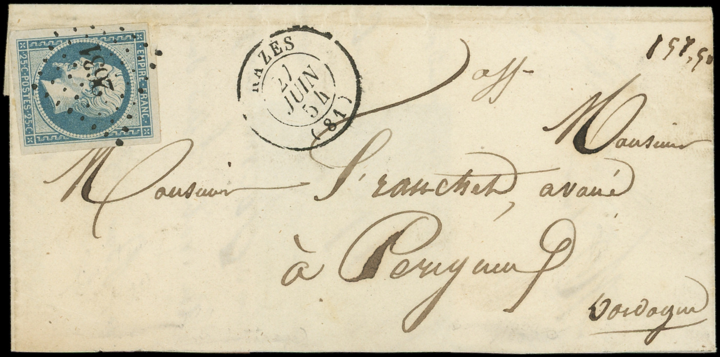 laiteux, fleur de tirage, obl. PC 2631 s. LSC, càd T15 RAZES 27/6/54, Superbe (Image)
