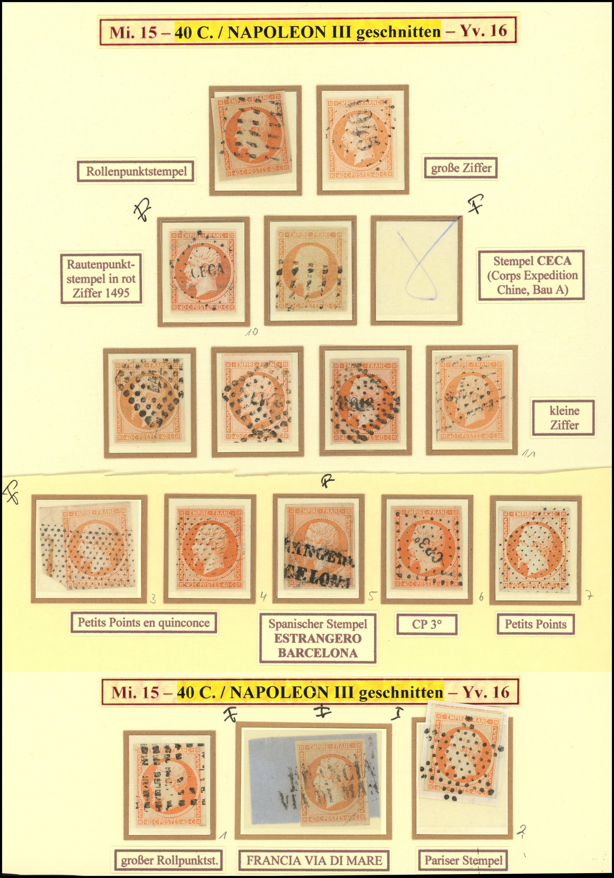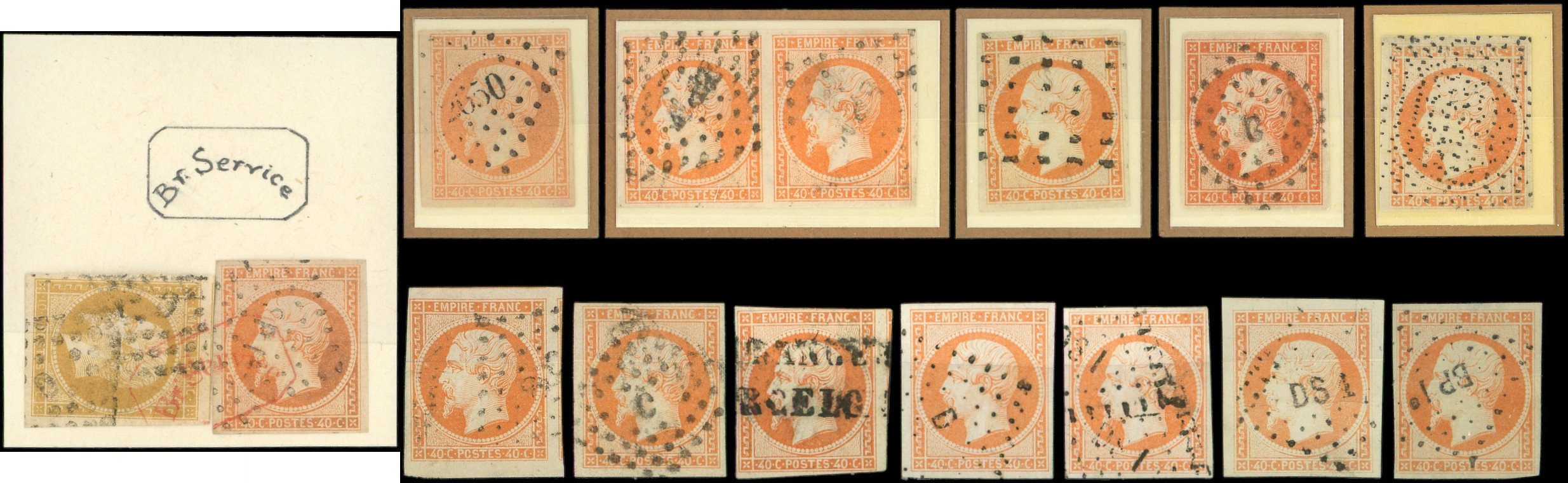 29 ex. avec nombreuses oblitérations intéressantes dont Pointillés, Amb., ESTRANGERO BARCELONA, CECA, Gros Points, la plupart exemplaires choisis TB/TTB (Image) (Image2)