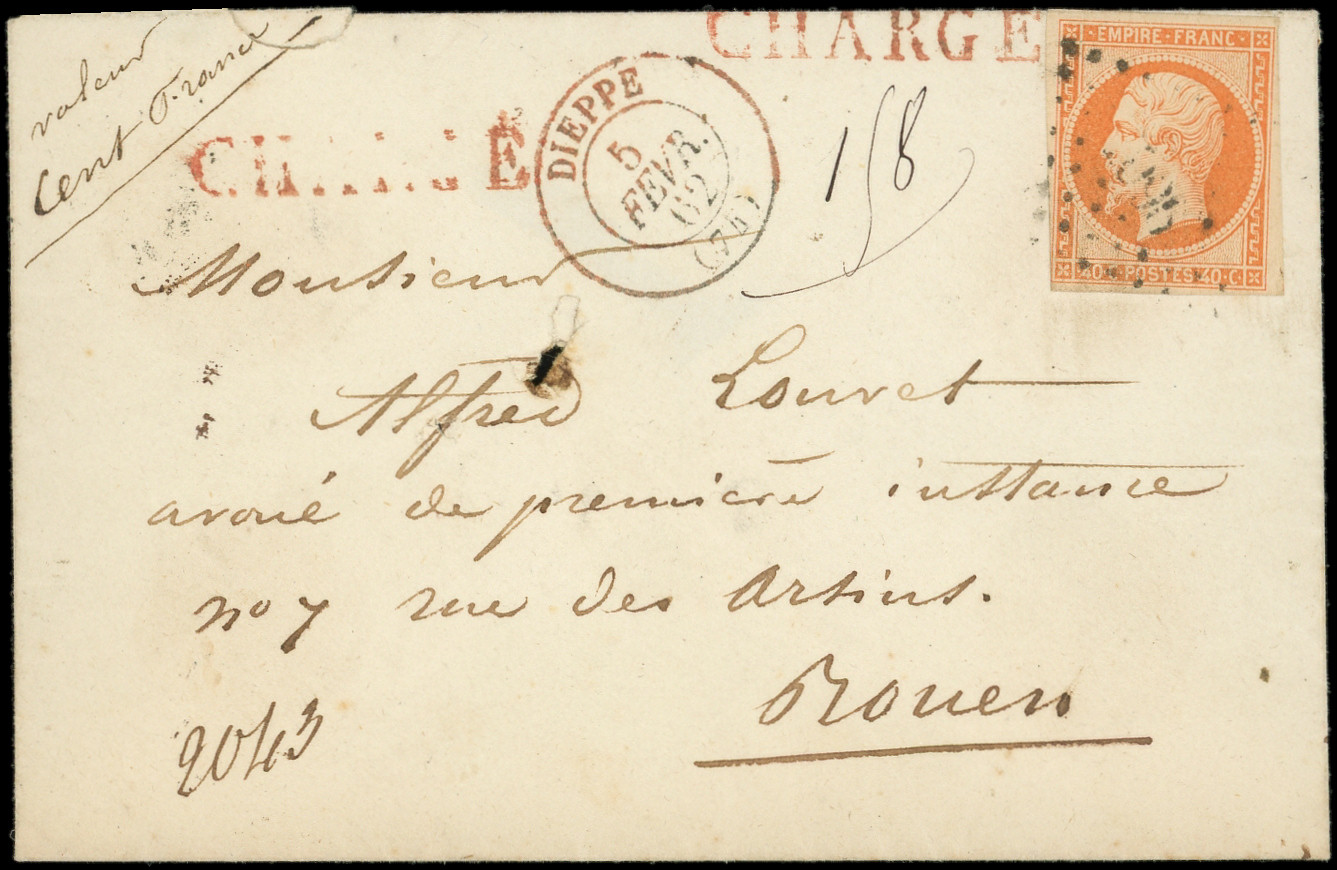 obl. PC 1096 s. Env. CHARGE, càd T15 DIEPPE 5/2/62 en ROUGE, TB (Image)