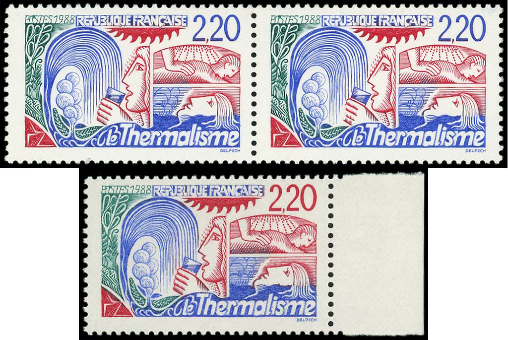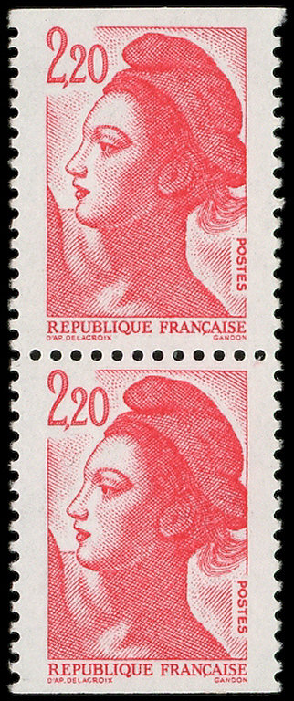 2,20 rouge, PAIRE verticale, un ex. SANS PHOSPHO, l'autre infime point de PHOSPHO, TB. C (Image)