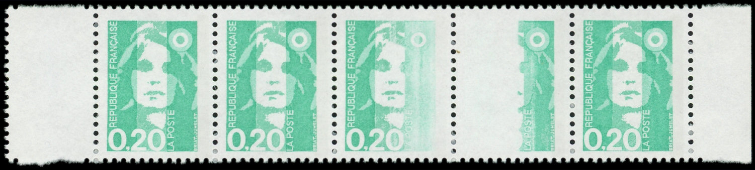 0,20 émeraude, impression A SEC au centre d'une BANDE de 5, TB. C (Image)