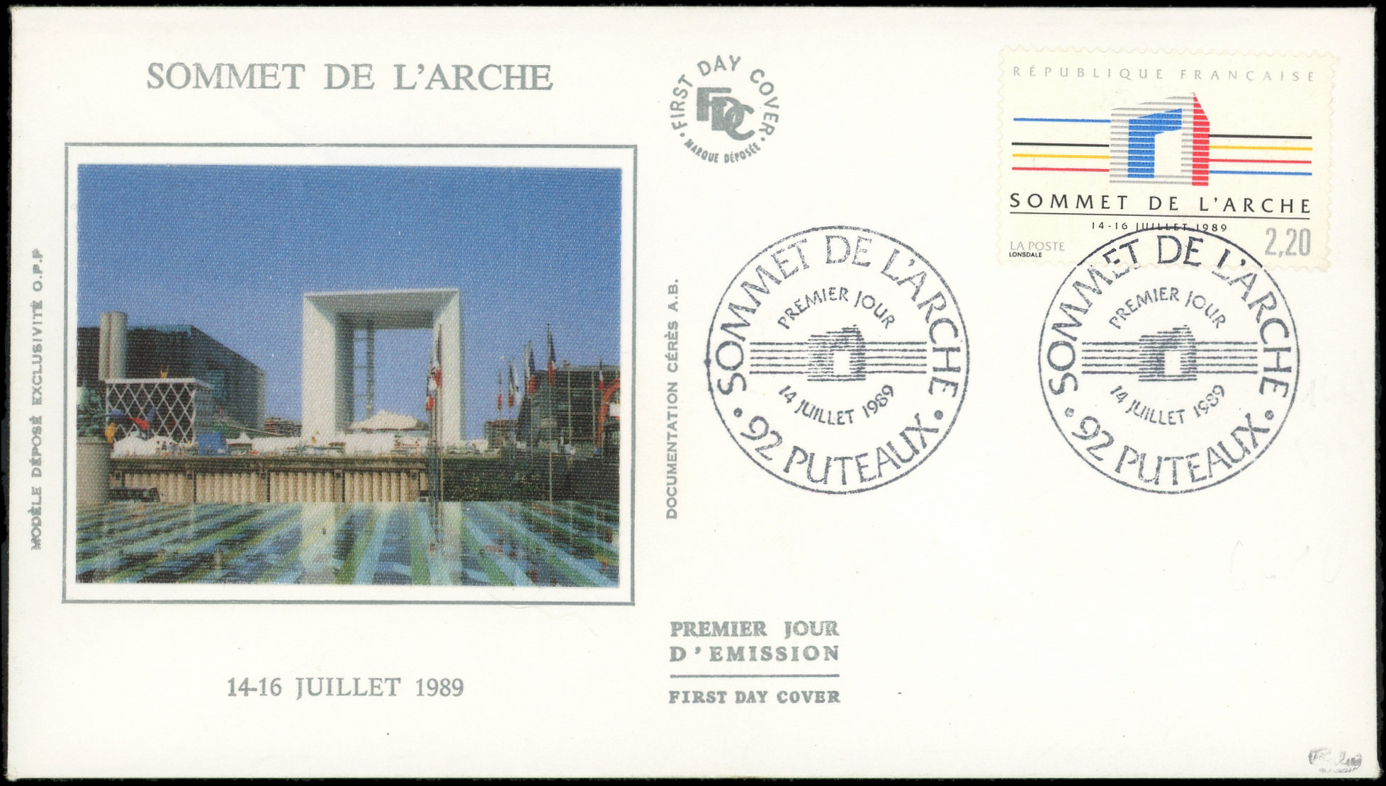 l'Arche, LIGNE VERTE OMISE, obl. 1er Jour sur FDC, TB. C (Image)