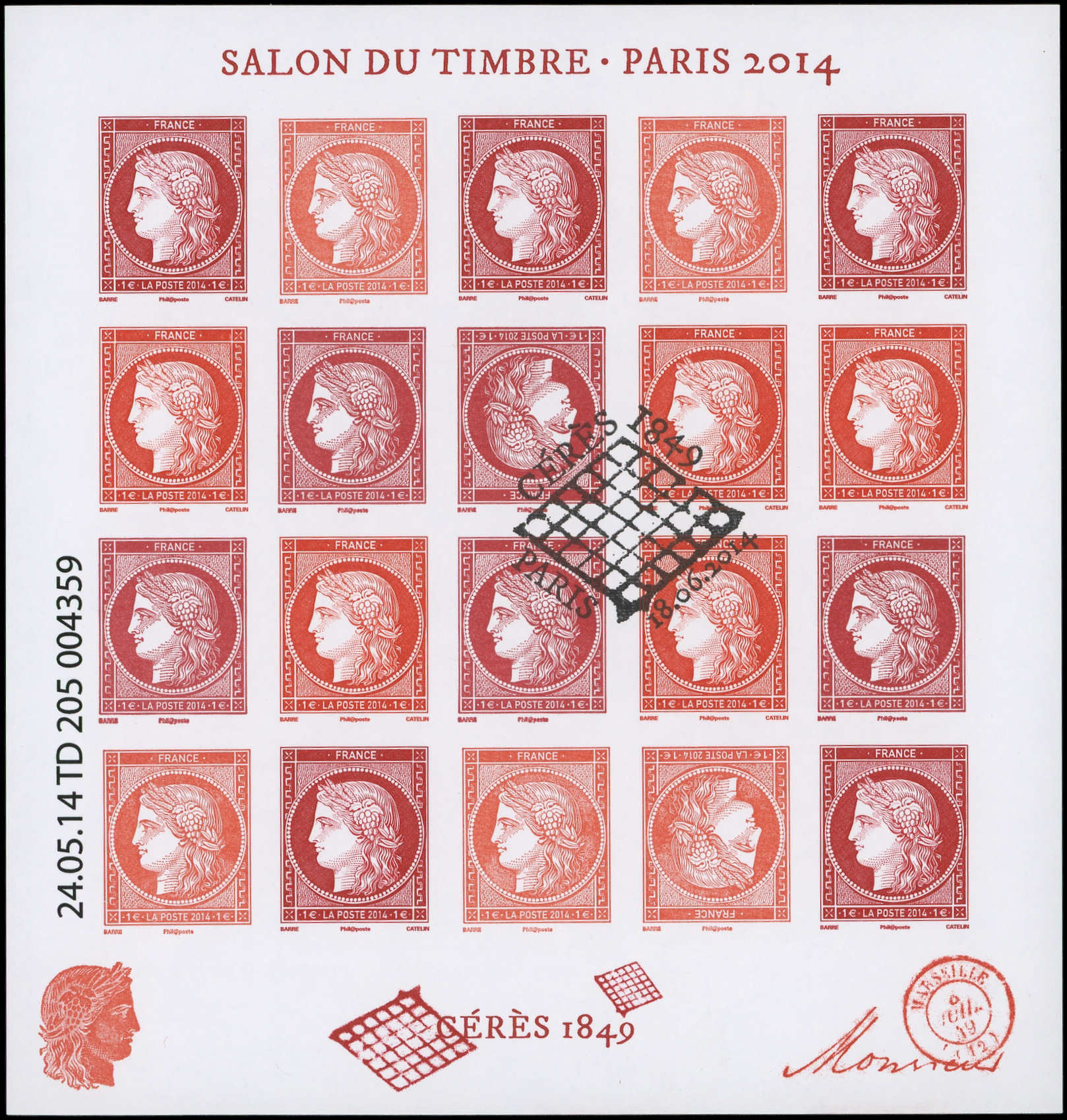 Timbre 2014, le feuillet **, oblitération sur 4 t. (tête bêche), TB (Image)