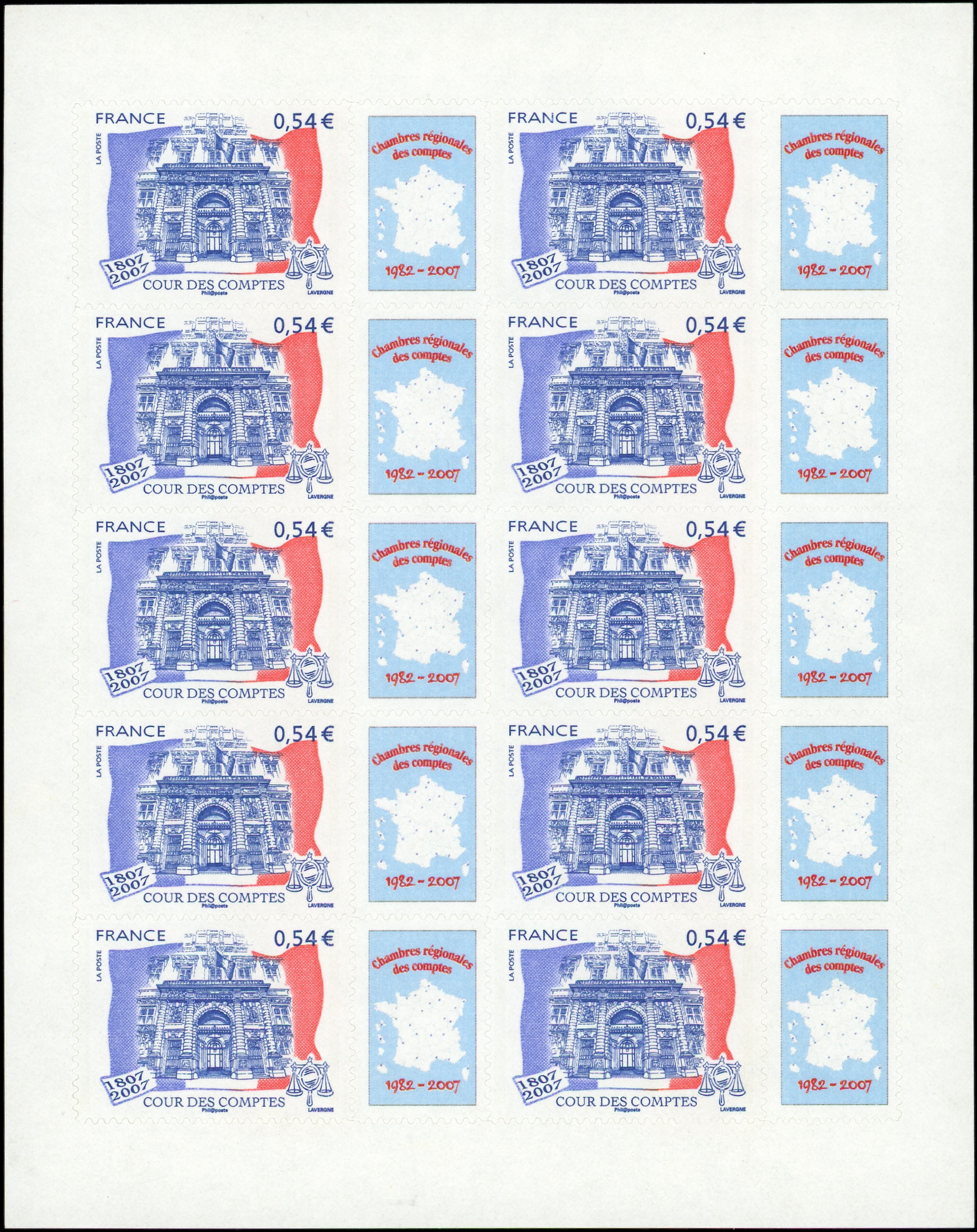 : Cour des Comptes avec vignette, 1er tirage, FEUILLE de 10, TB (Image)
