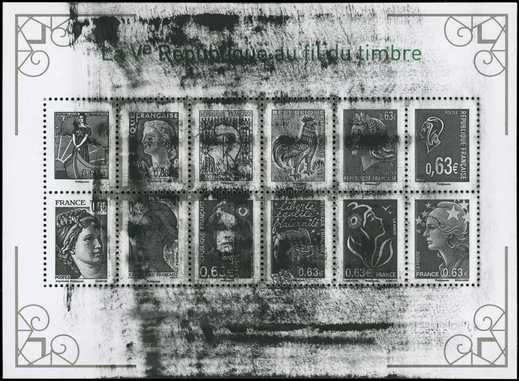République au fil du timbre, le feuillet avec important défaut d'ESSUYAGE, TB (Image)