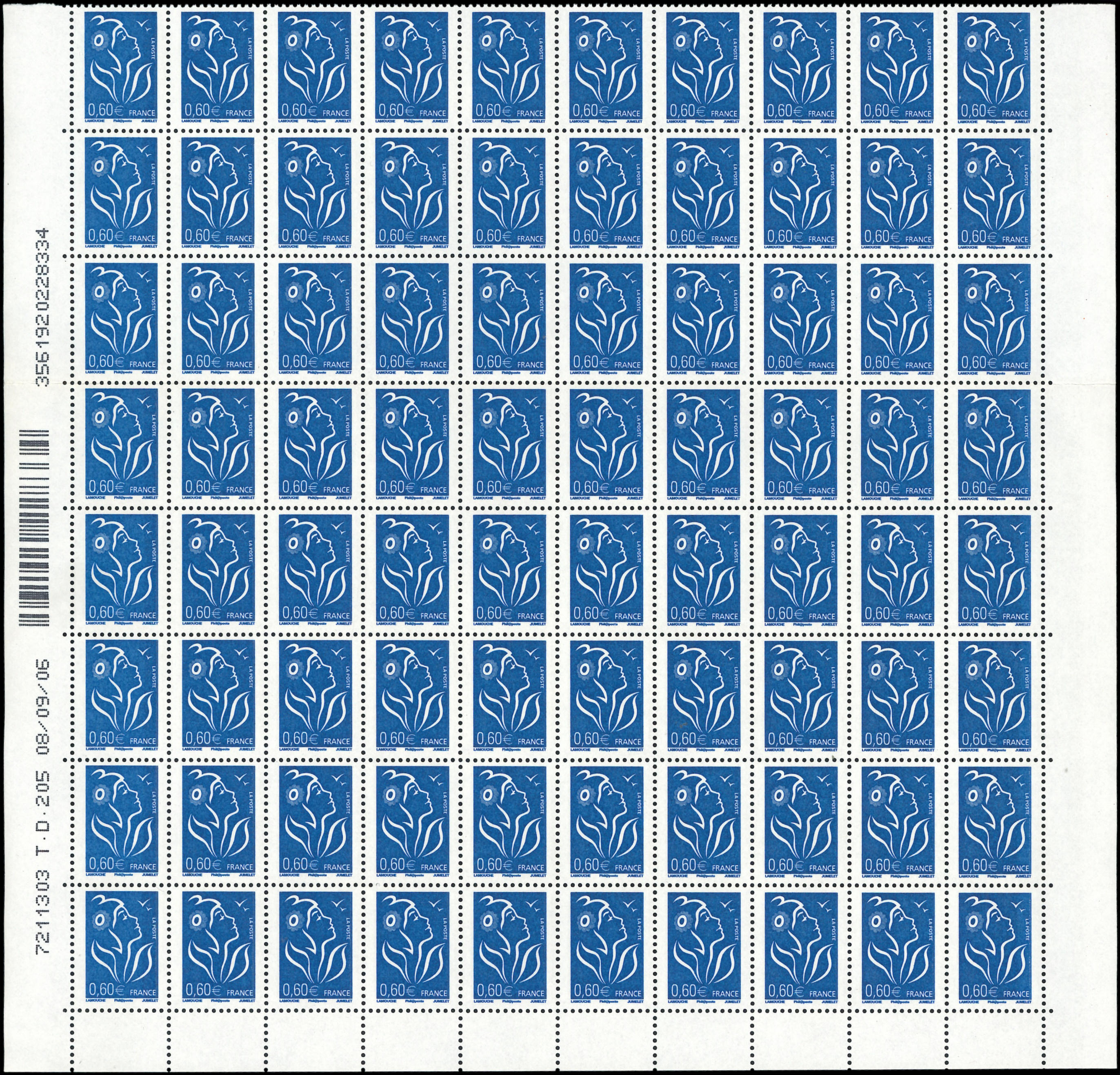 0,60 bleu, gomme brillante, BLOC de 80 TD 205 daté 8/9/06 et bloc vertical de 50, TB (Image)
