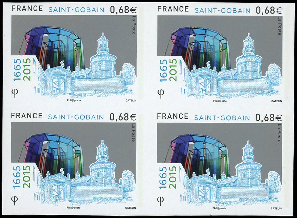 Saint-Gobain, NON DENTELE accidentel, BLOC de 4, TB. J (Image)