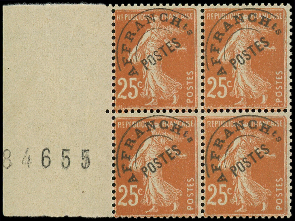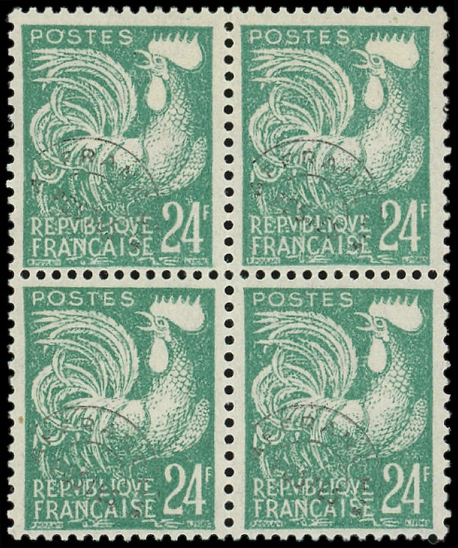 vert-bleu, surcharge TRES DEFECTUEUSE, BLOC de 4, TB. C (Image)