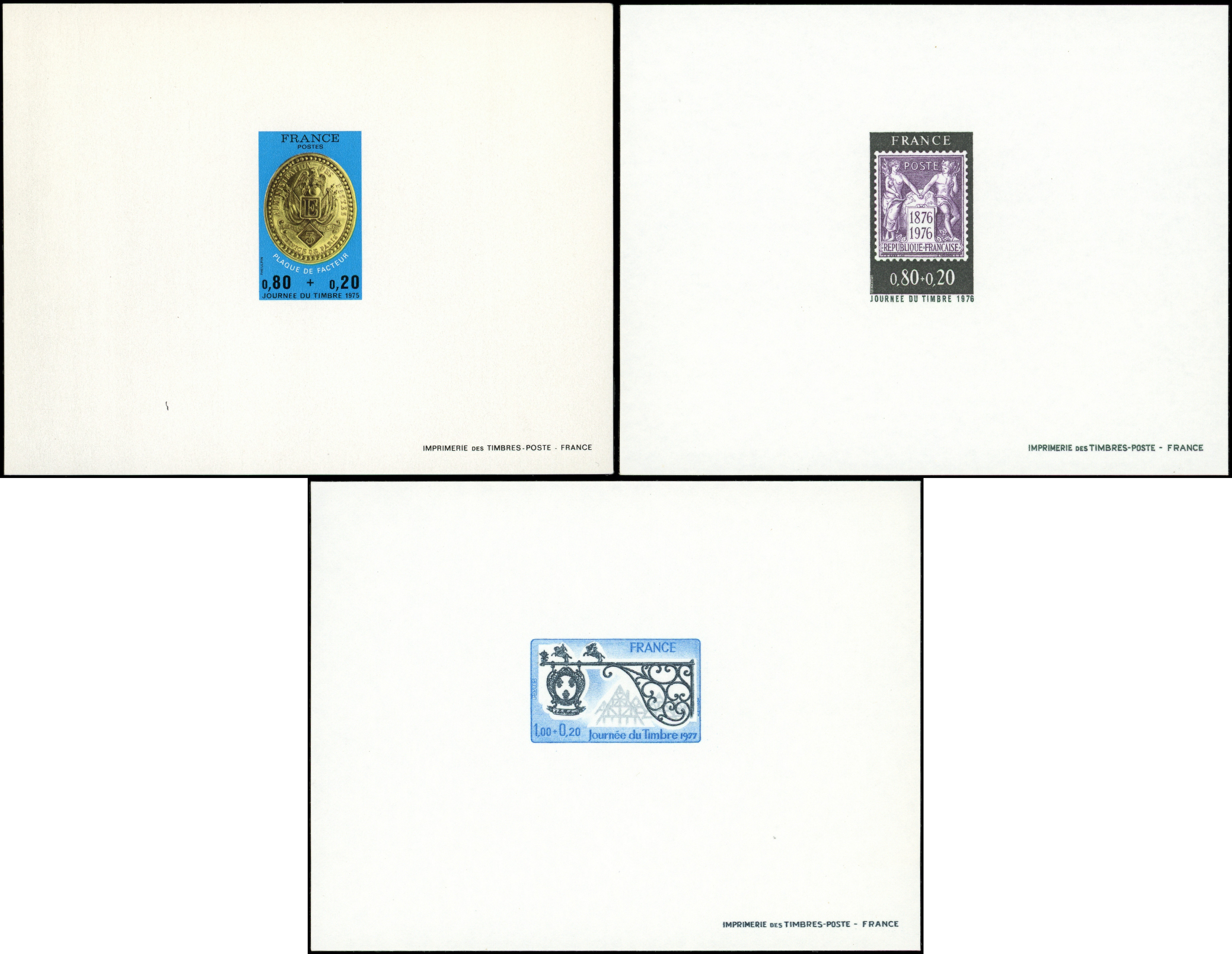 1927 Journée du Timbre 1975, 1976 et 1977, 3 épreuves, TB (Image)