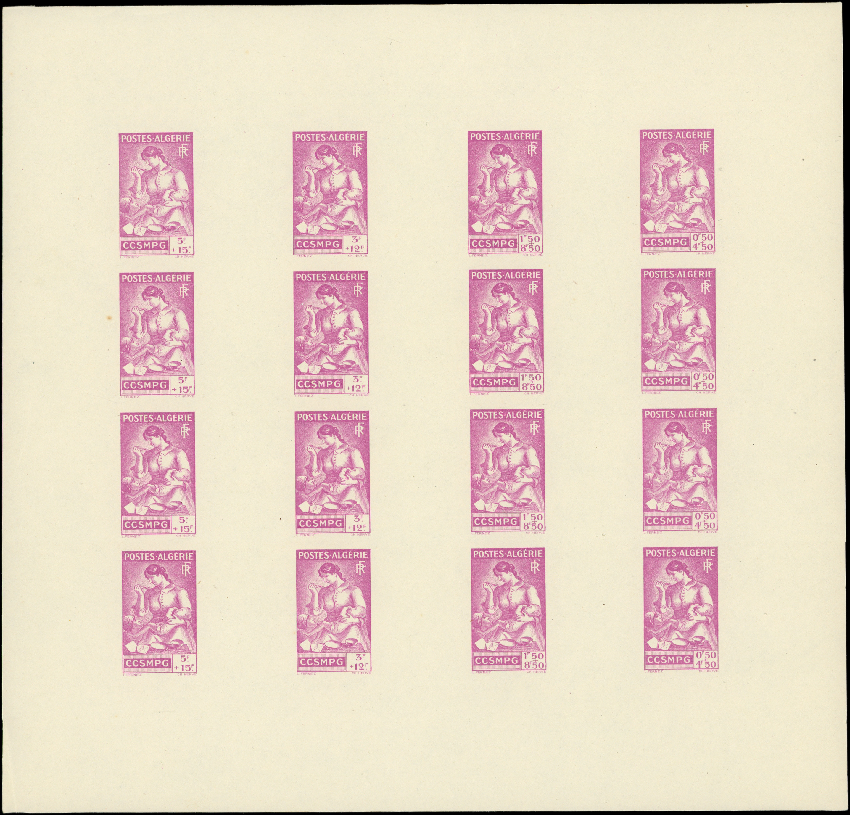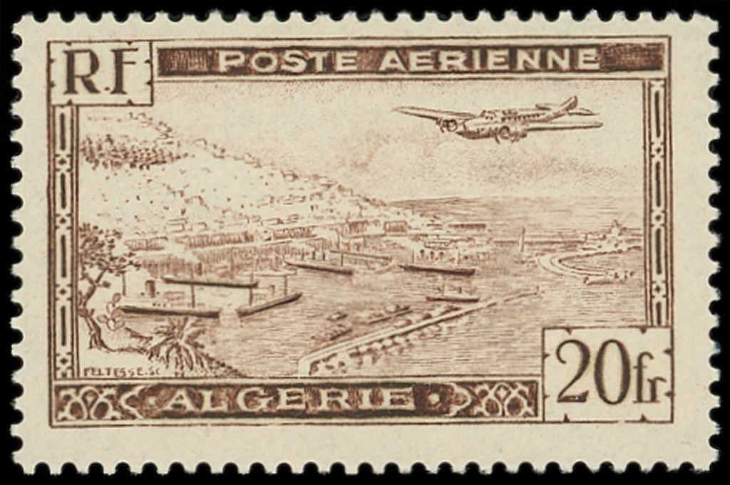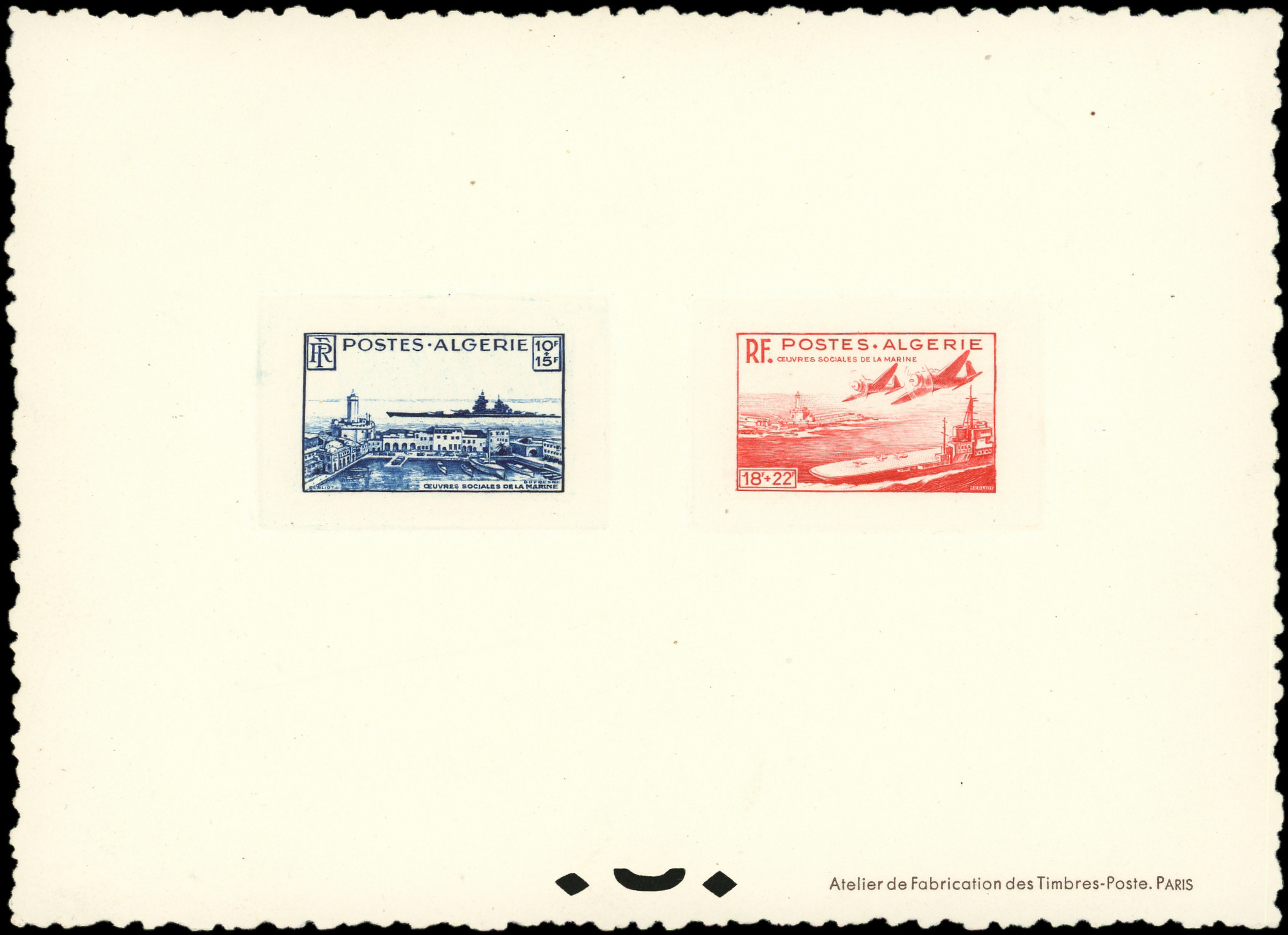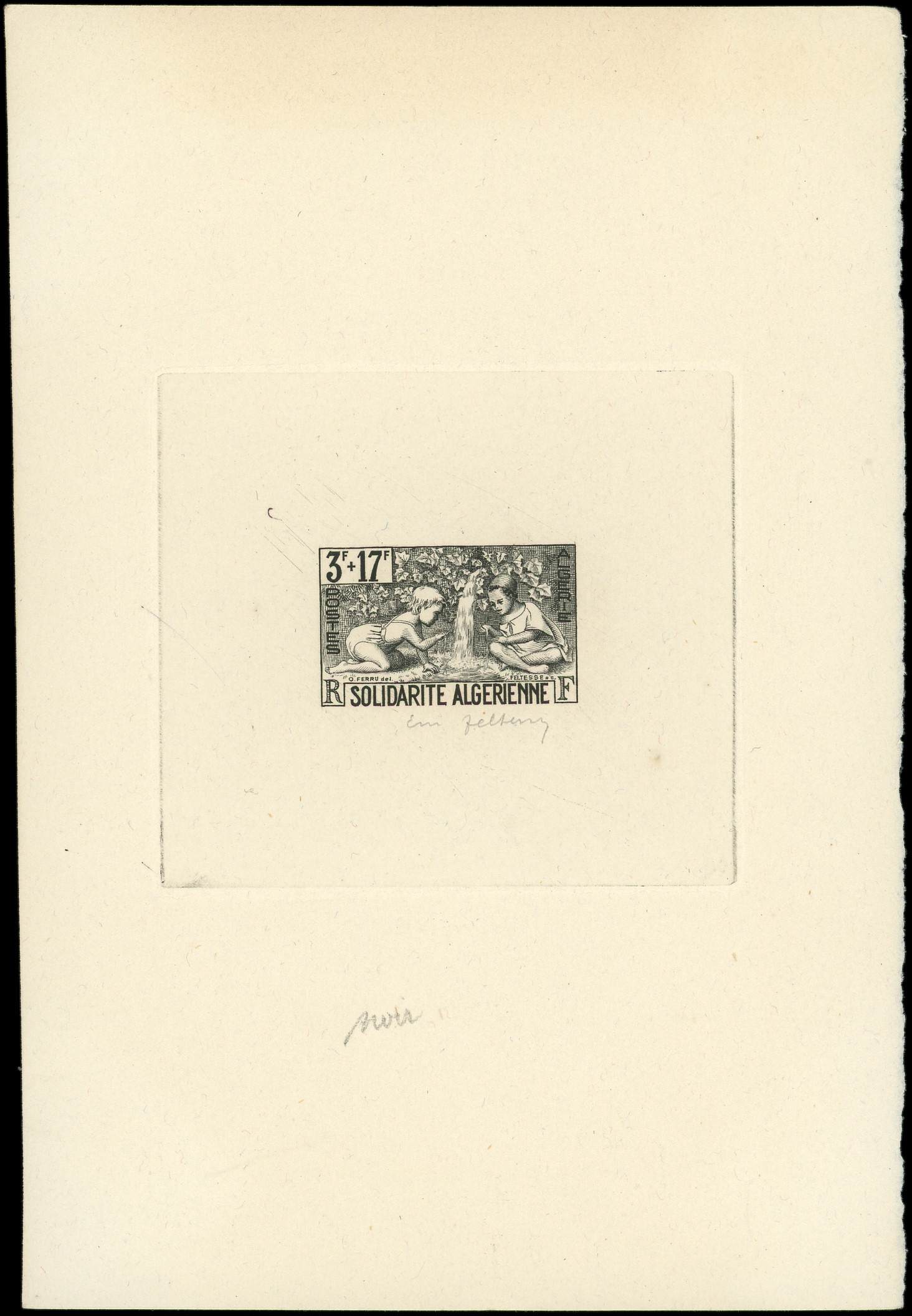 Algérienne, 3f. + 17f., Epreuve d'artiste en noir, TB (Image)