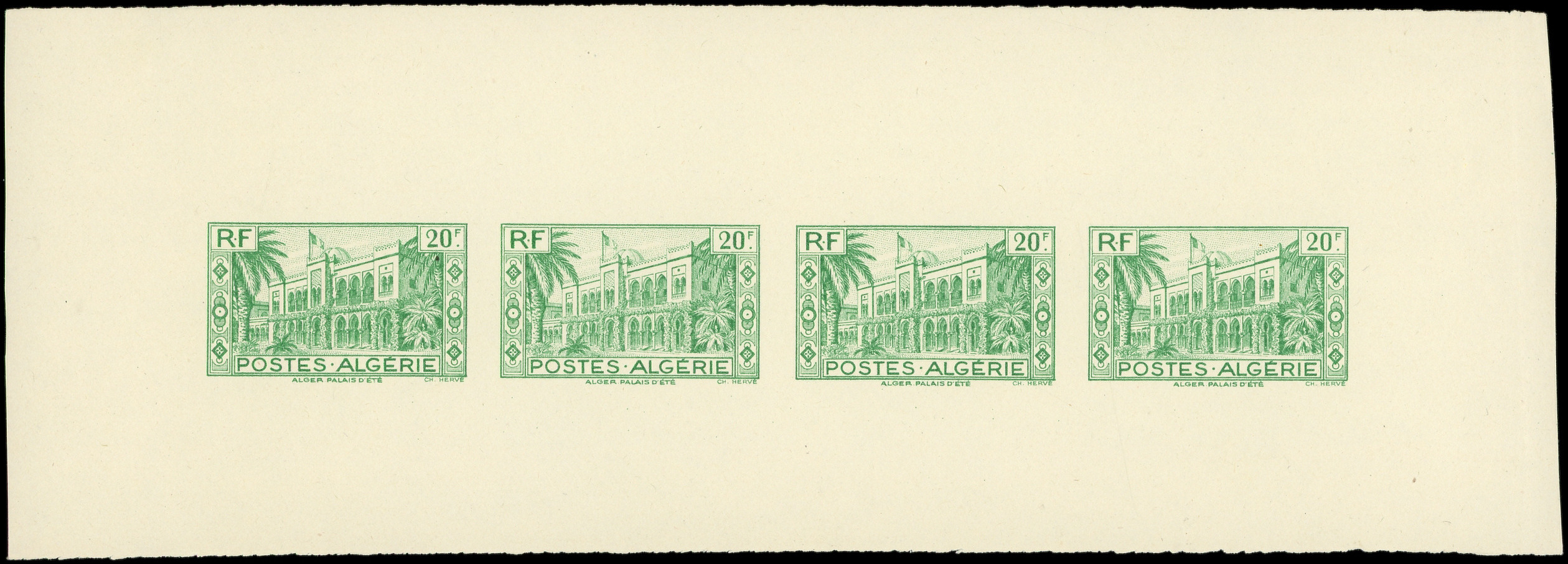 d'Eté, 20f. vert, feuillet de 4 ex. NON DENTELES 210 x 75, TB (Image)