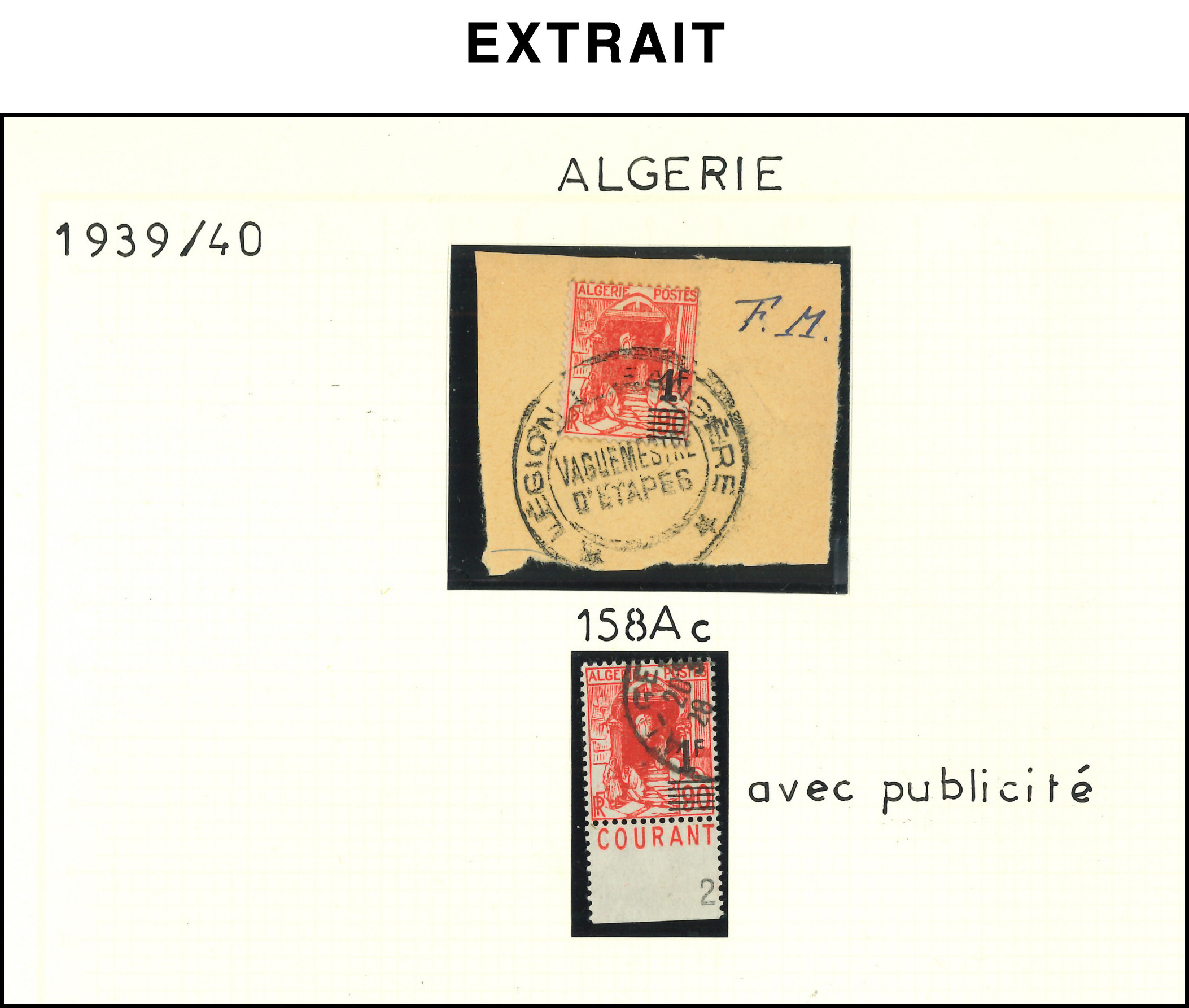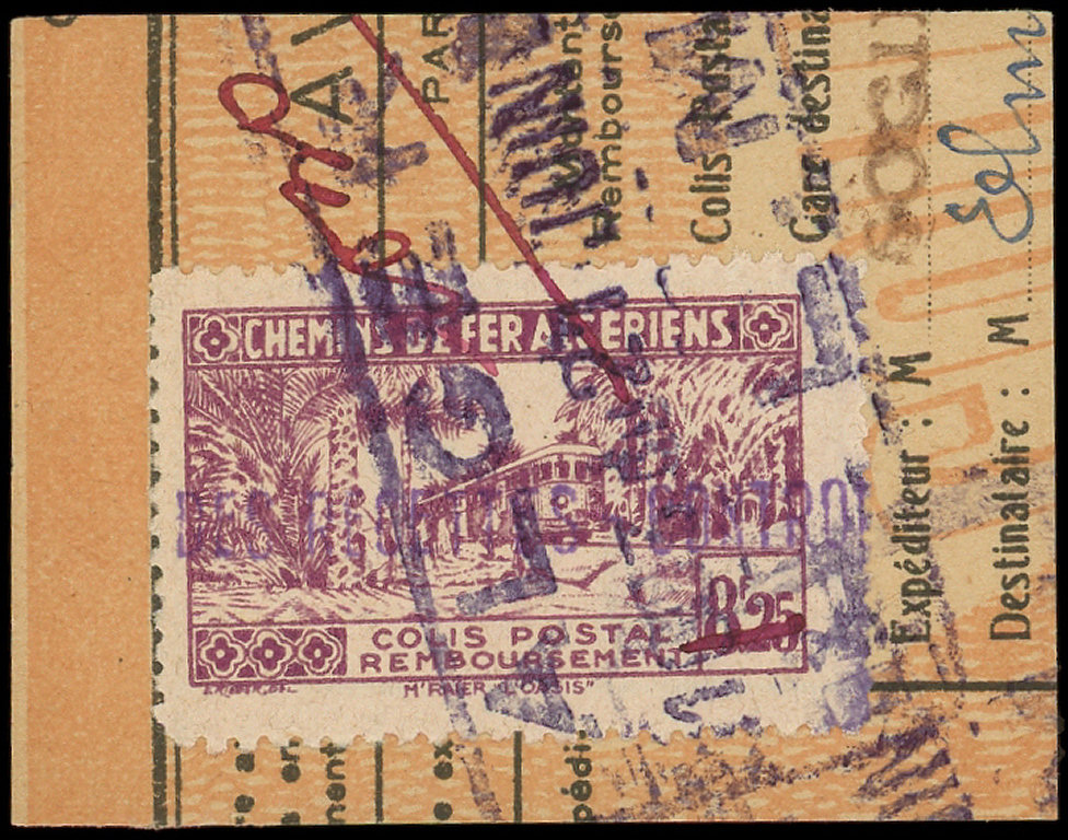 : 10f3 sur 8f25 lilas, obl. ALGER PLM s. fragt, surcharge A CHEVAL sur le support, TB (Image)