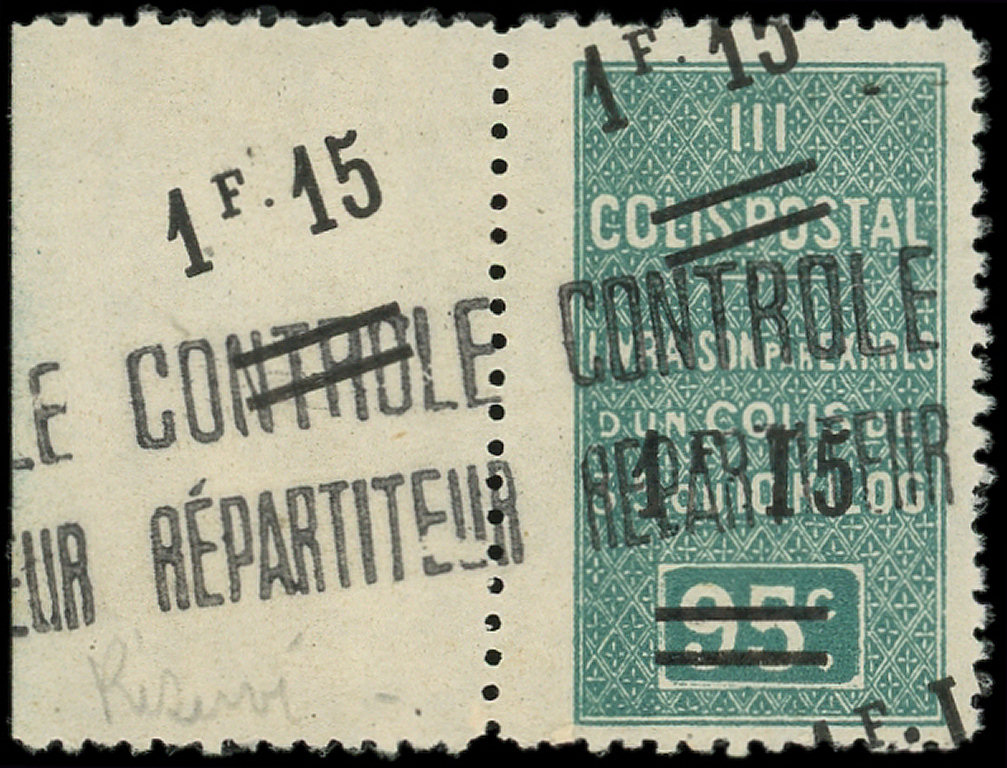 : 1f15 sur 95c. vert, DOUBLE surcharge dont une oblique, bdf, TB (Image)