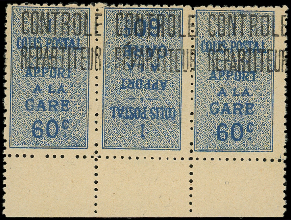: 60c. bleu, TETE BECHE dans une BANDE 3 bdf, TTB (Image)