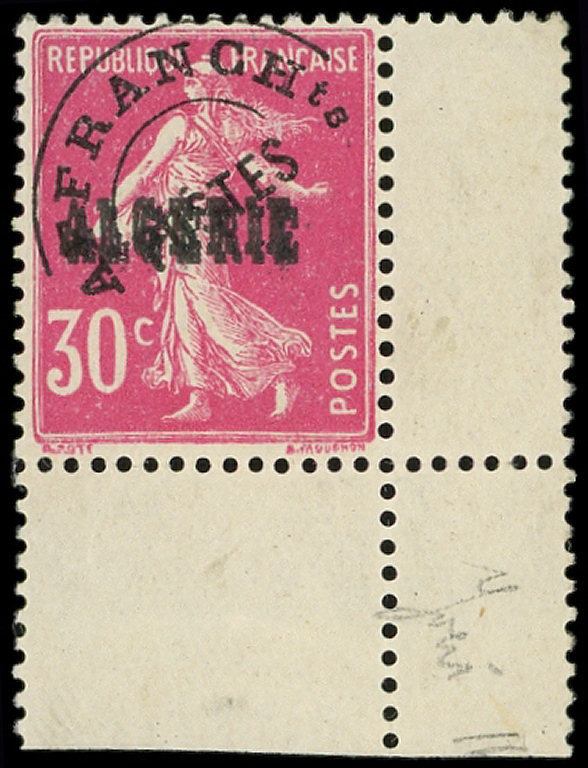 rose, DOUBLE surcharge, coin de feuille, TB (Image)