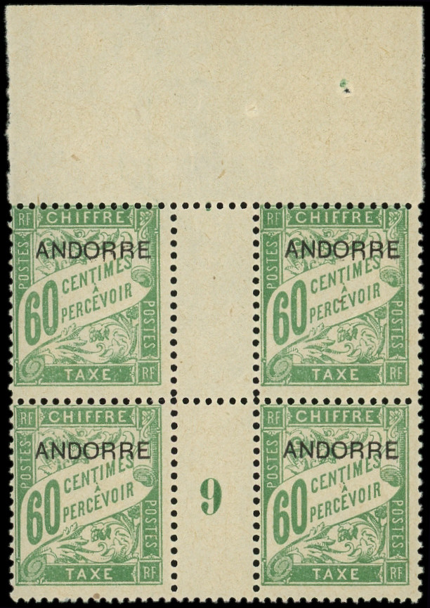 vert, Bloc de 4 Mill.9, haut de feuille, TB. cote Maury (Image)