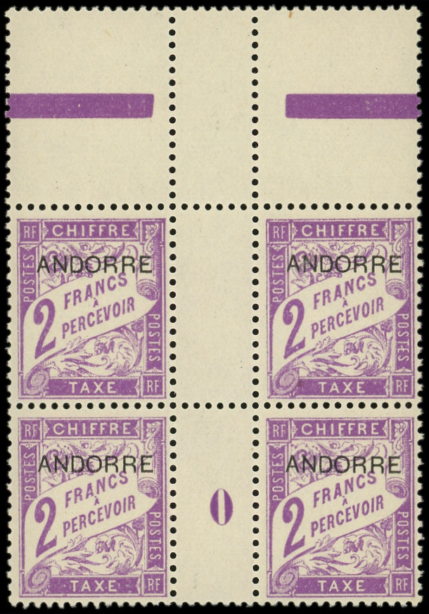 violet, Bloc de 4 Mill.0 blf (avec charnière), TB. cote Maury (Image)