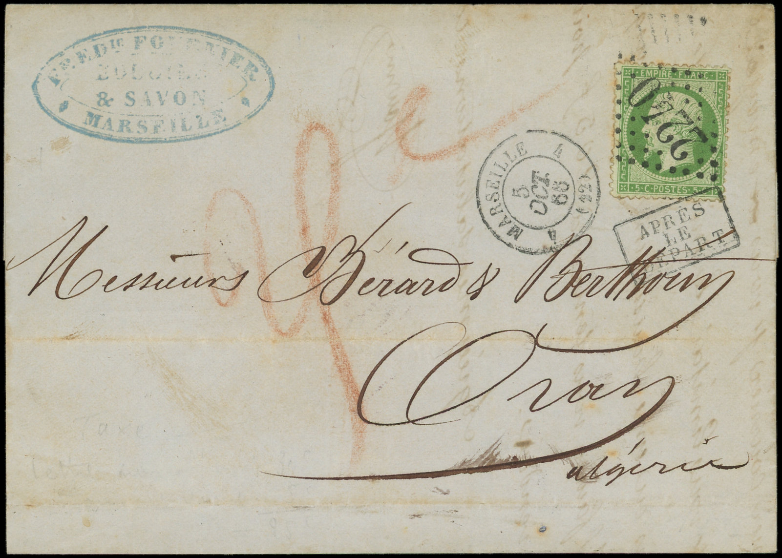obl. GC 2240 s. LAC, càd T15 4 MARSEILLE 4 5/10/68, TAXE 25c. crayon rouge pour ORAN 11/10, TB (Image) (Image2)