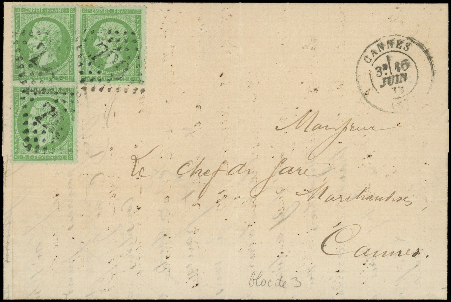 BLOC de 3 obl. GC 720 s. LAC, càd T17 CANNES 16/6/73, TTB (Image)