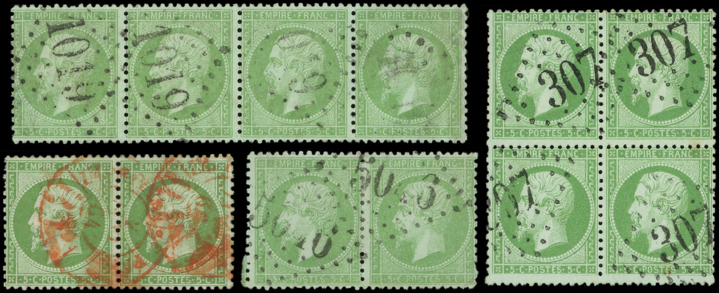 BANDE de 4, BLOC de 4 et 2 PAIRES dont une obl. càd rouge des Imprimés, TB (Image)