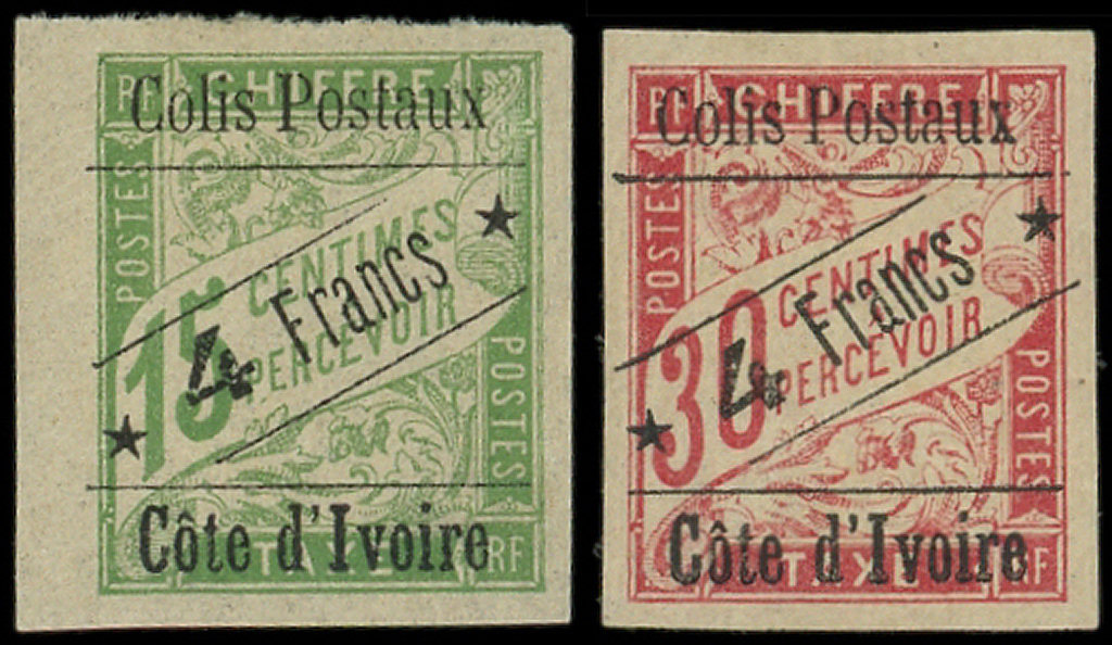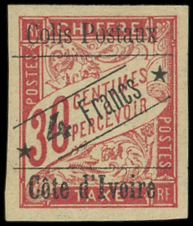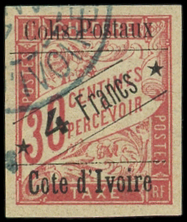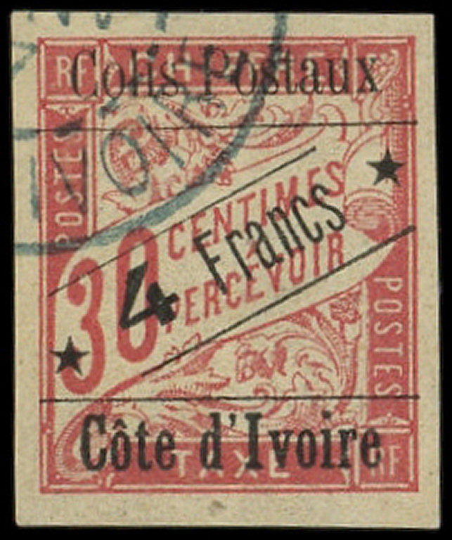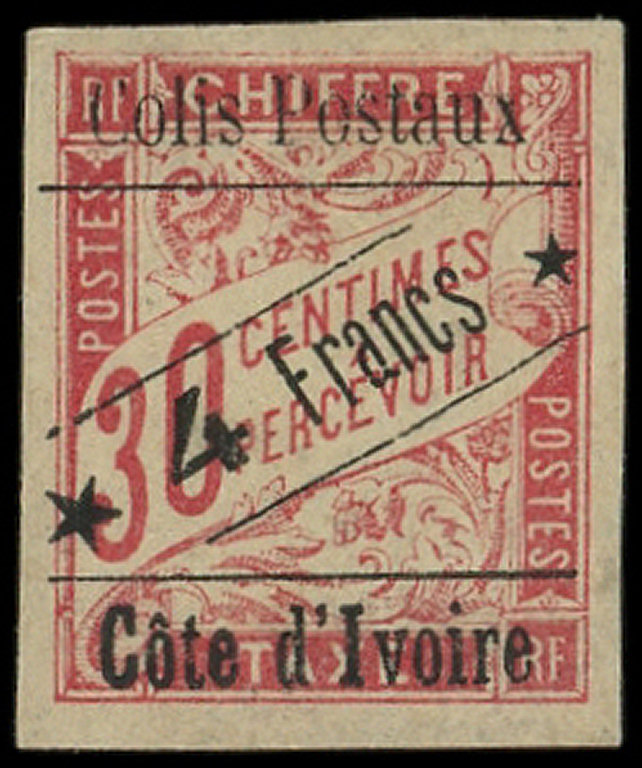 : 4f. sur 30c. carmin, 2 petites étoiles et SANS accent sur le o de Côte, obl., TB (Image)