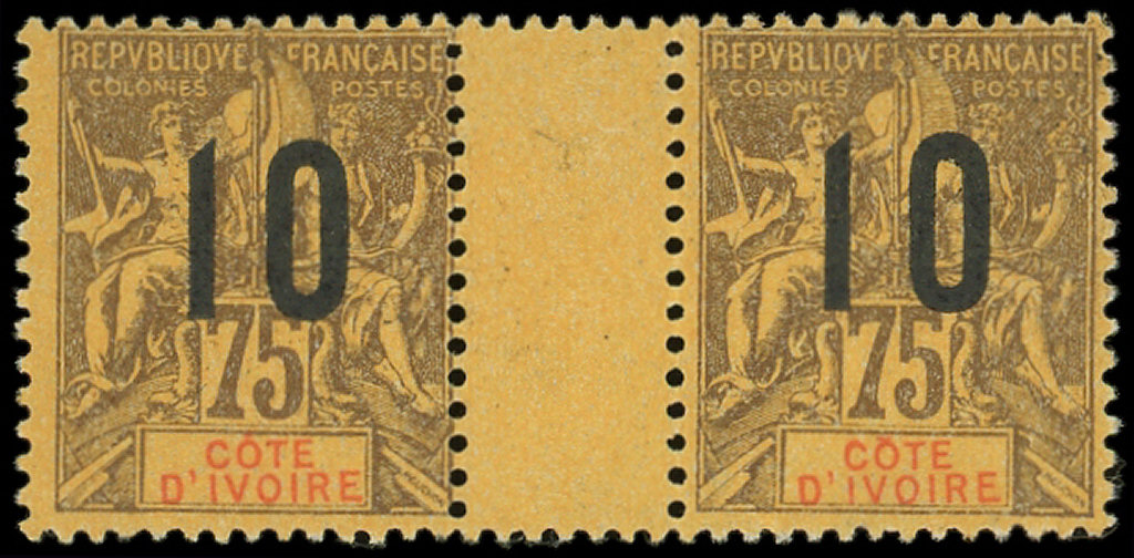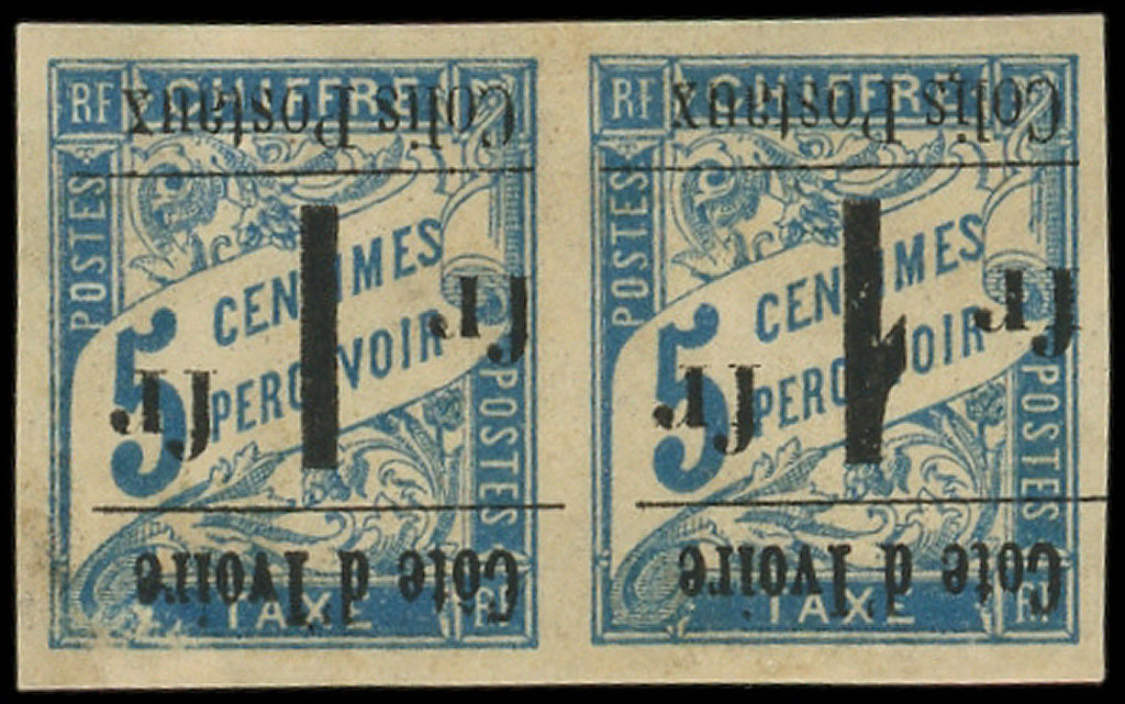 1f. sur 5c. bleu, surcharge RENVERSEE, PAIRE T I et T II, T I sans accent sur le o de Côte, pli de gomme dans le bas, néanmoins R et TB. C (Image)