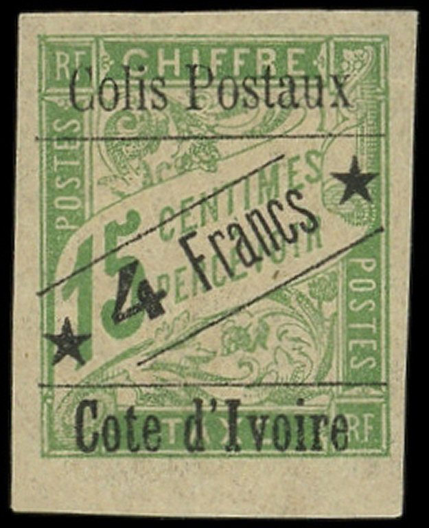 : 4f. sur 15c. vert-jaune, 2 grandes étoiles, sans accent sur le o de Côte, petit bdf, TB (Image)
