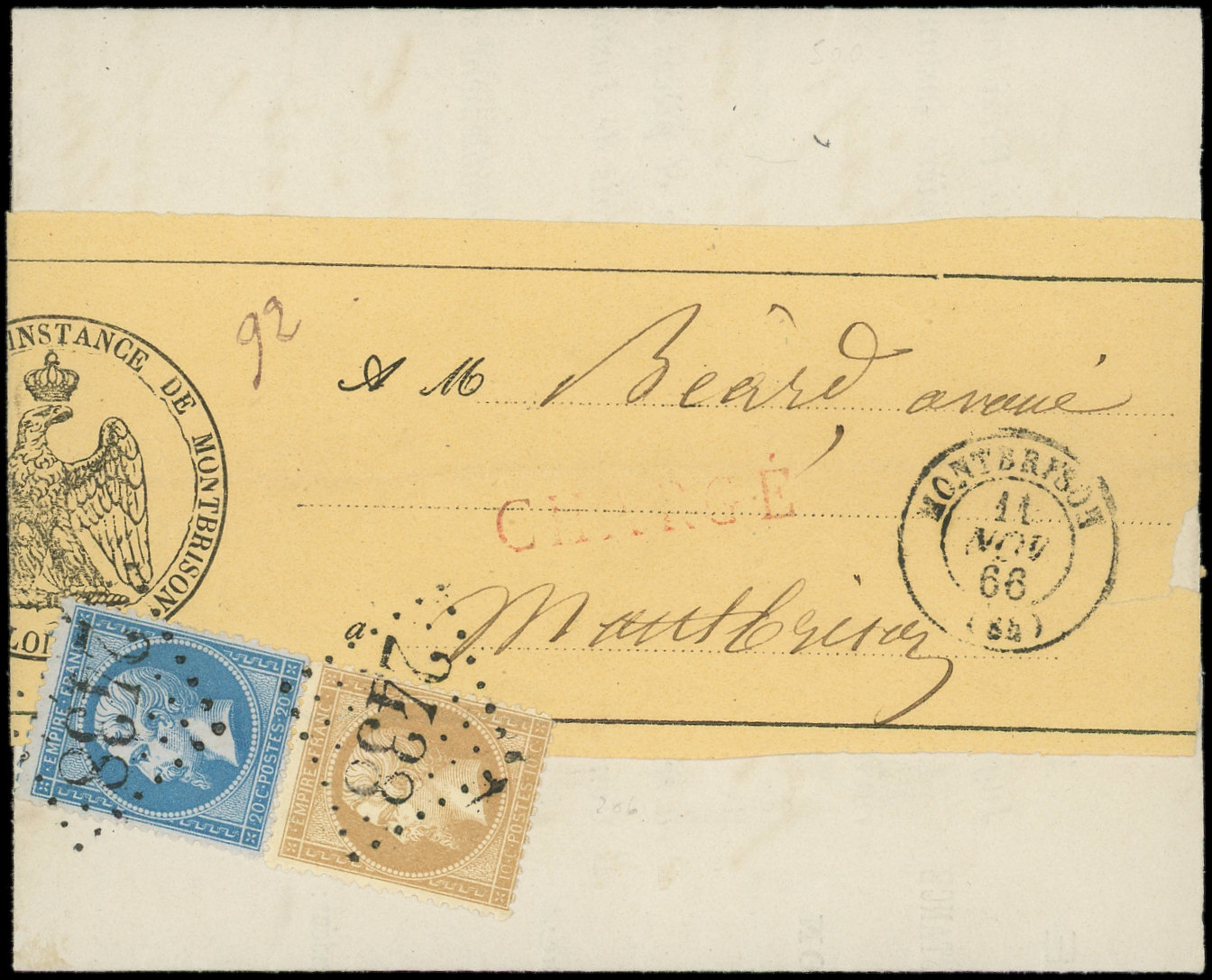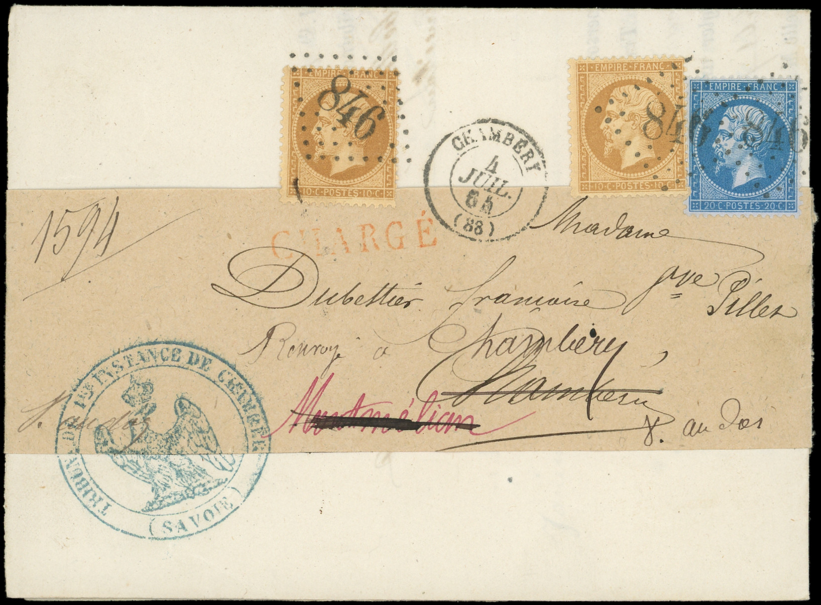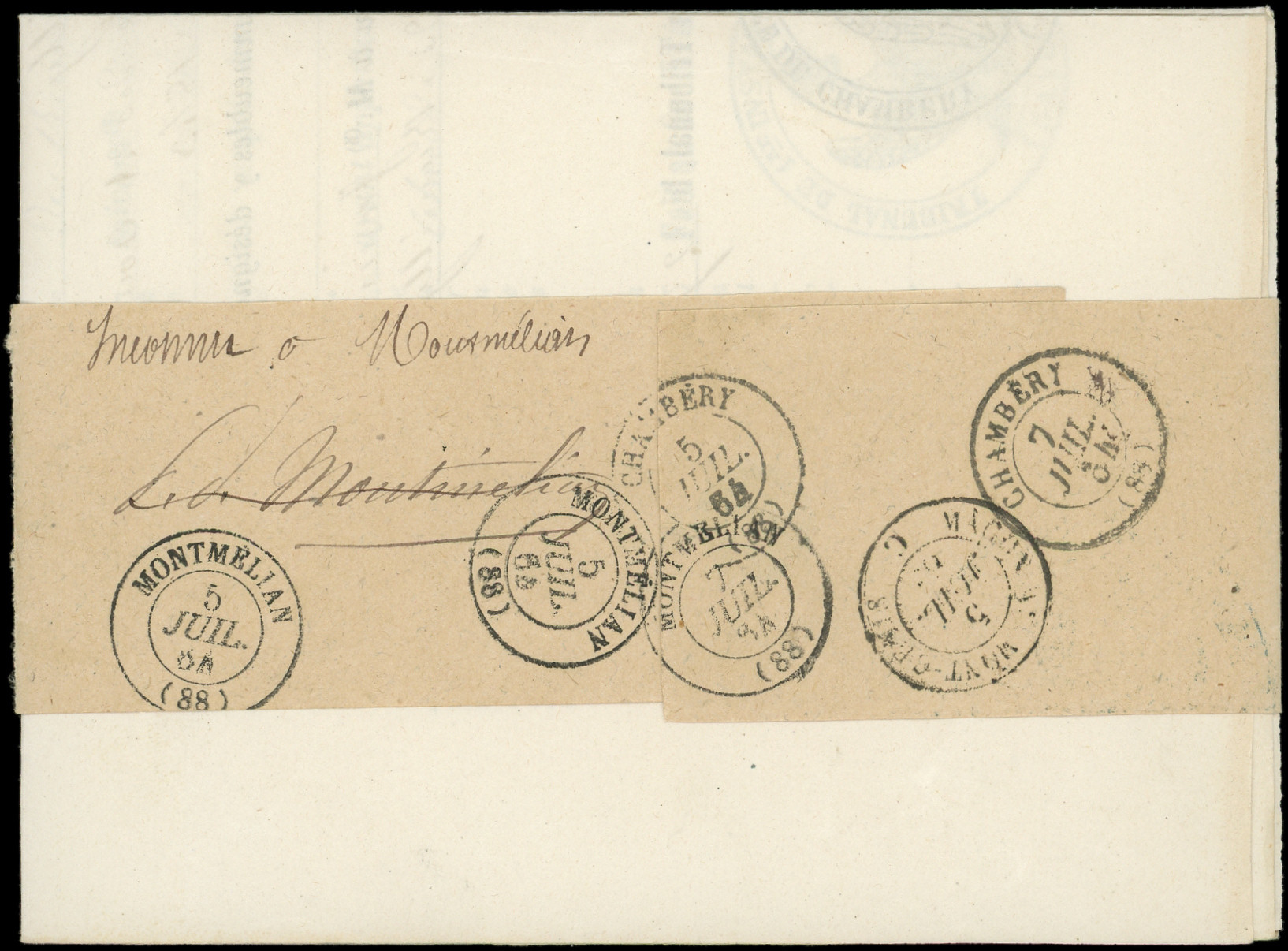 et 20c. obl. GC 846 s. Imprimé CHARGE du Tribunal complet sous bande, càd T15 CHAMBERY 4/7/64, arr. MONTMELIAN 5/7, divers cachets au verso et retour CHAMBERY 7/7, TTB
