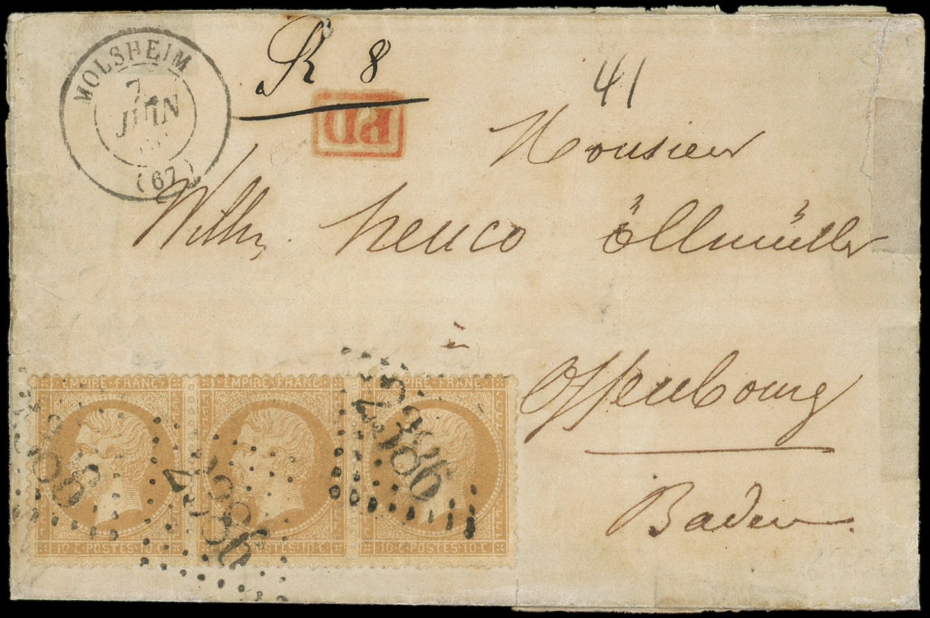 BANDE de 3 obl. GC 2386 s. LAC, càd T15 MOLSHEIM 7/6/66, arr. HEIDELBERG, TTB (Image)