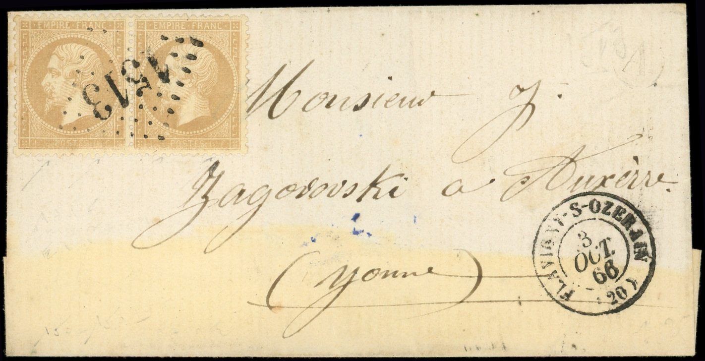 PAIRE légende inférieure quasi EFFACEE, obl. GC 1513 s. LSC, càd T15 FLAVIGNY-S-OZERAIN 3/10/66, variété RARE surtout en paire, TB (Image)