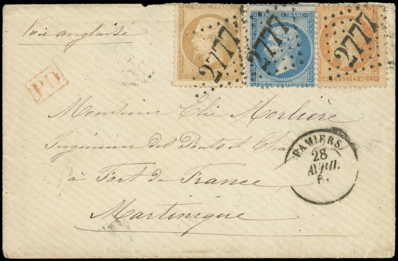 10c., 20c. et 40c. obl. GC 2777 s. Env., càd T16 PAMIERS 28/4/67, très joli TRICOLORE TTB (Image)