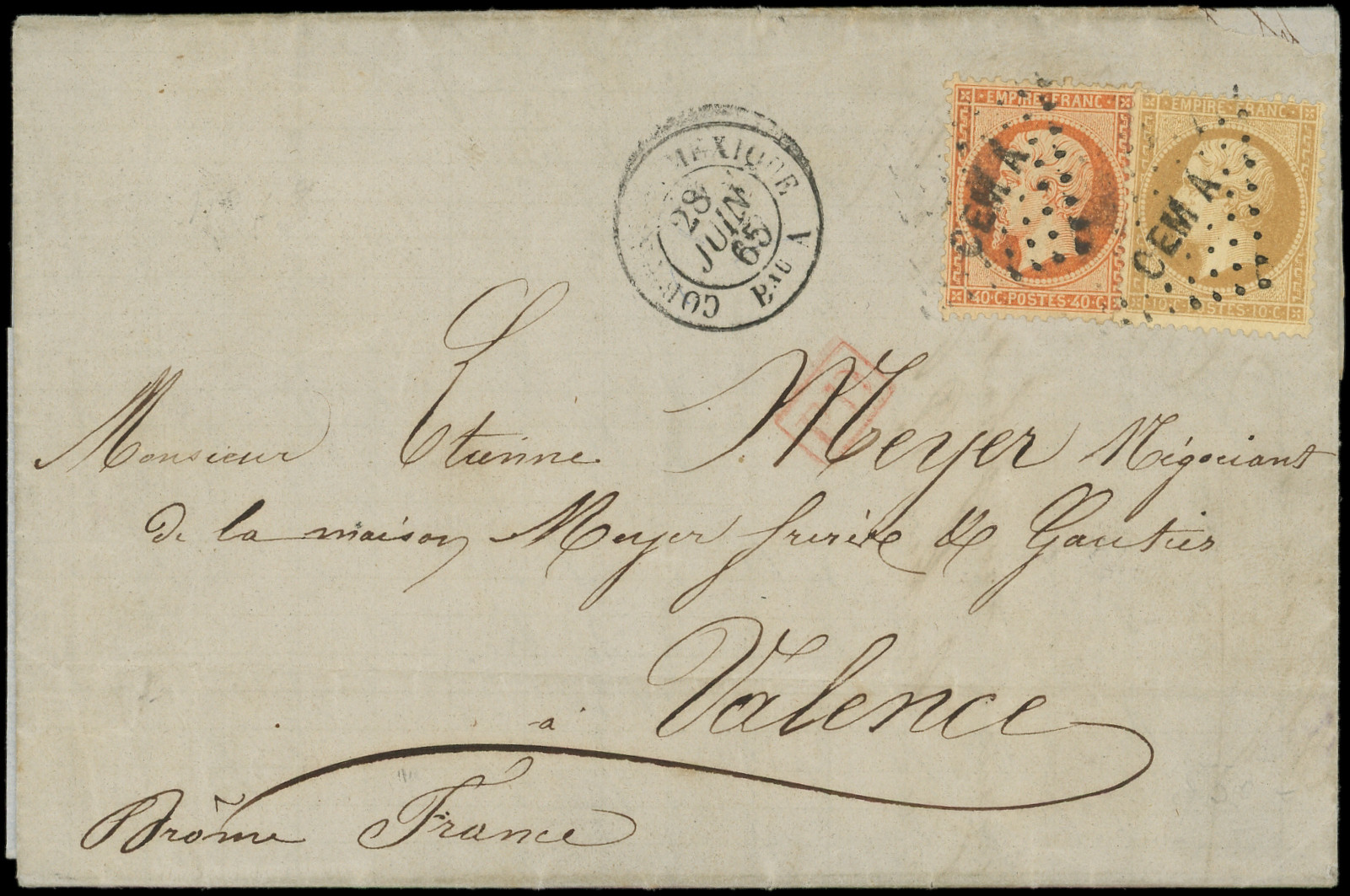 bistre et 40c. orange obl. Los. CEM A s. LAC, càd CORPS EXP. MEXIQUE Bau A 28/6/65, arr. VALENCE le 30/7, TB (Image) (Image2)