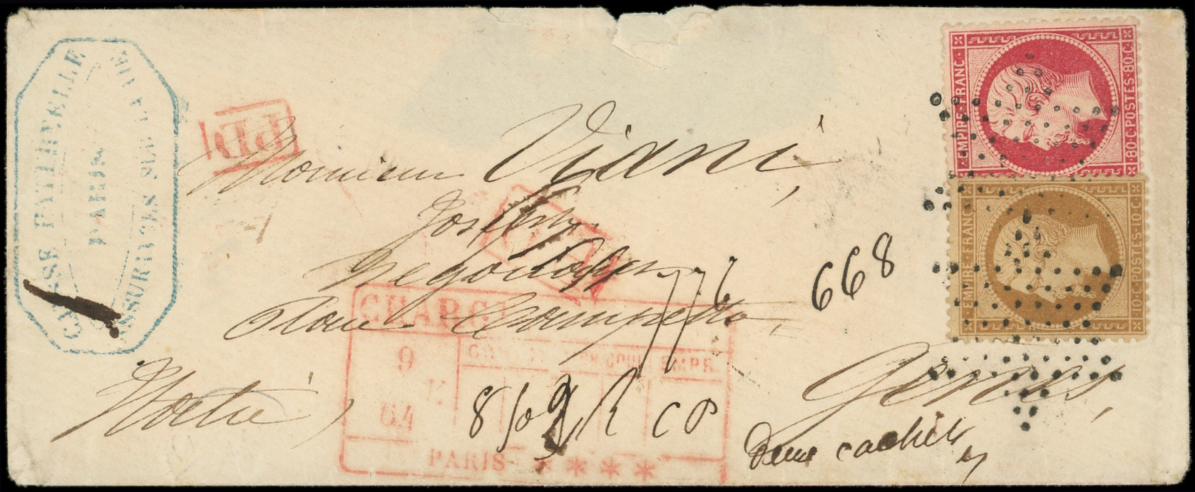 80c. obl. ETOILE s. Env. CHARGE pour GENES, collecteur au recto 9/-/64, très bonne combinaison, TB (Image) (Image2)