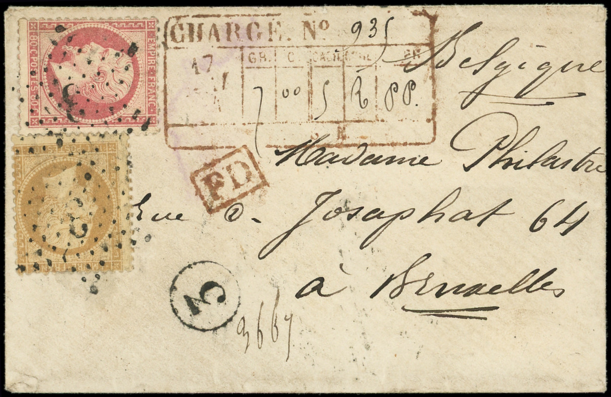 80c. obl. Etoile 3 s. petite Env. CHARGE, arr. BRUXELLES 18/5/64, combinaison TTB (Image)