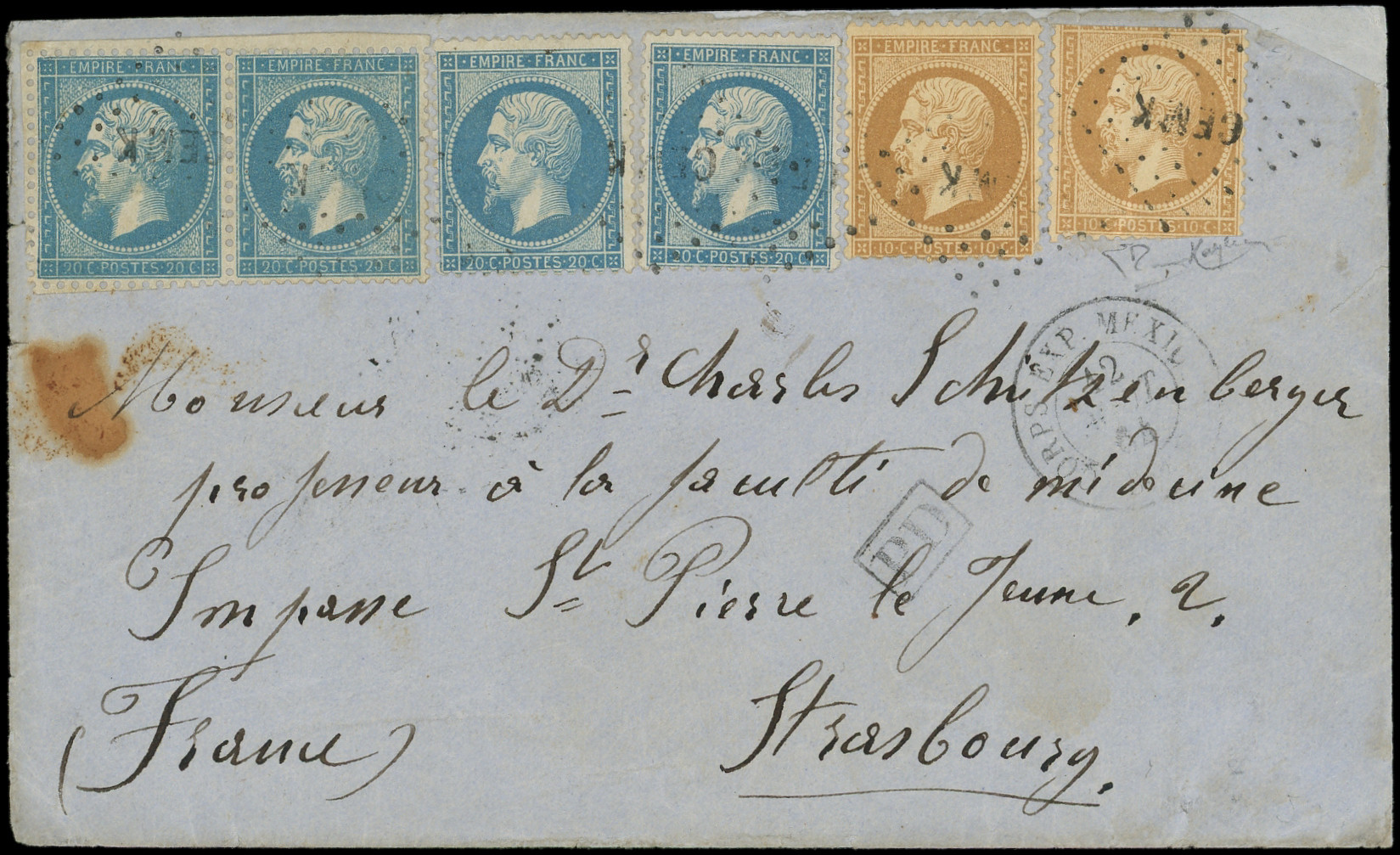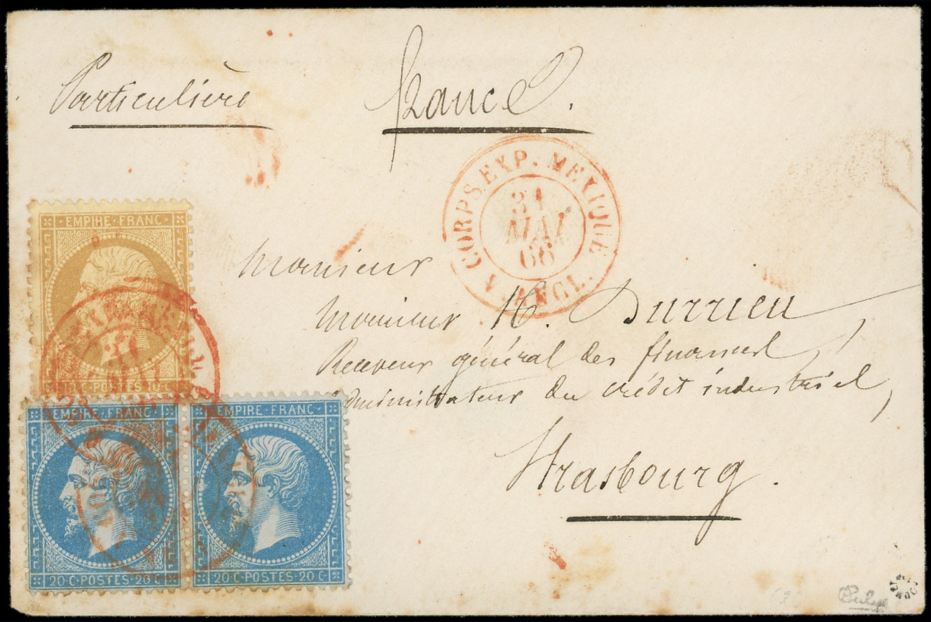 obl. càd ROUGE CORPS EXP. MEXIQUE V.ANGL. 31/5/66 s. Env. pour Strasbourg, au verso Amb. PARIS A STRASBOURG 31/5, RR, TB. C (Image) (Image2)