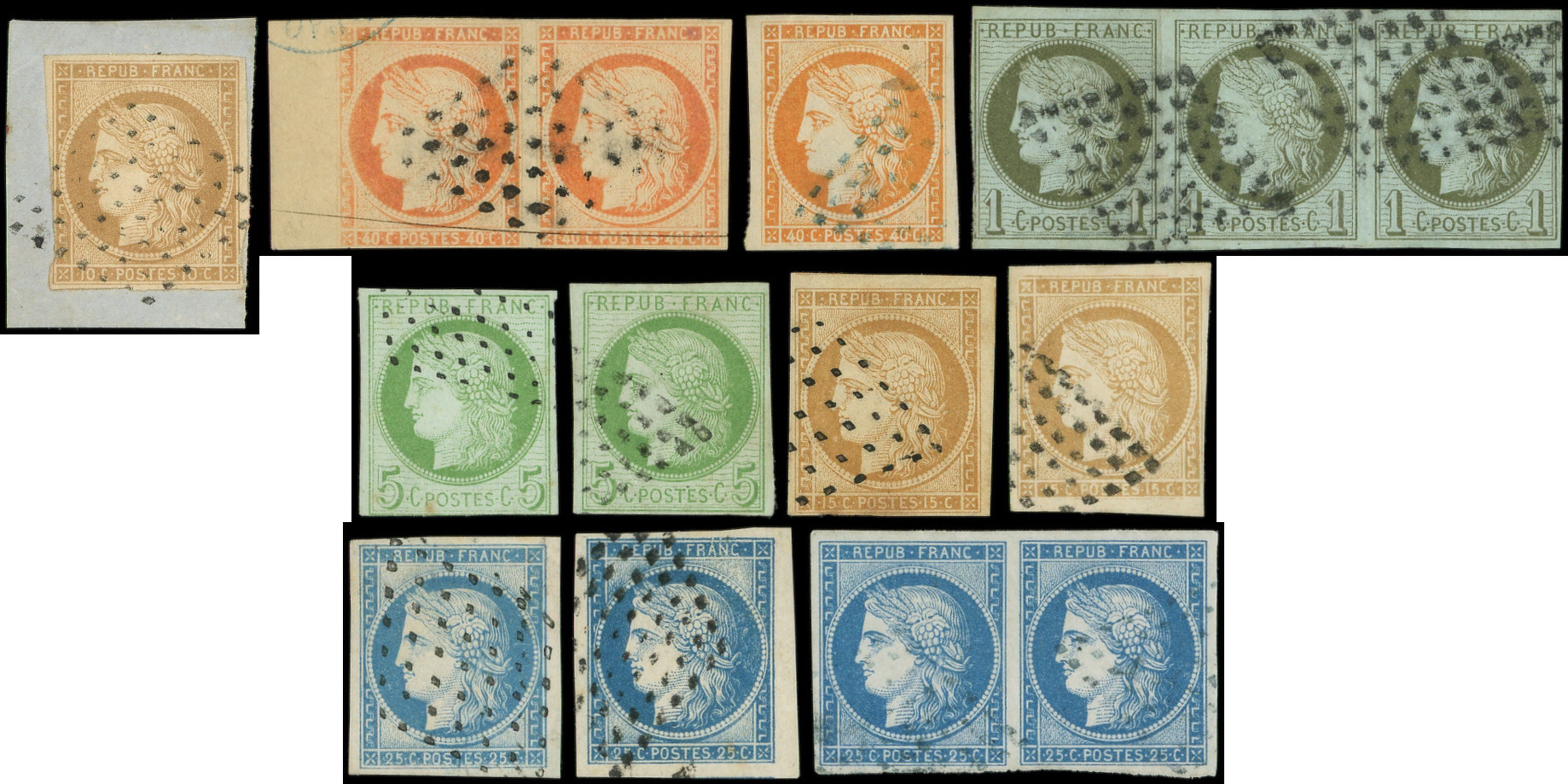 14 (3), 17 (2), 19 (2), 23 (4), oblitérations Los. 64 points, bel ensemble (Image)