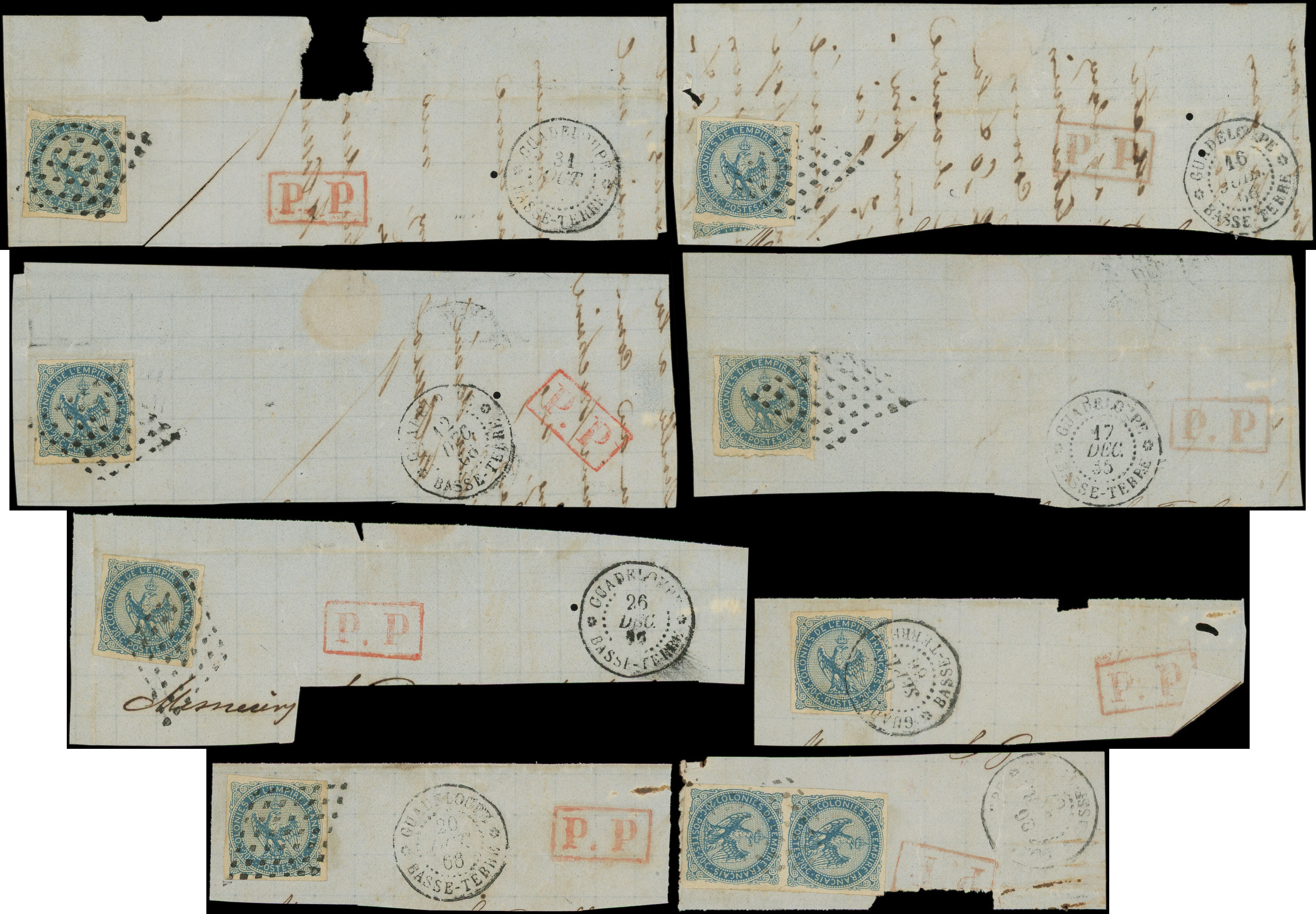 bleu, 8 fragts, tarif 20c. ou 40c. obl. Los. 49 pts de BASSE-TERRE, TB (Image)